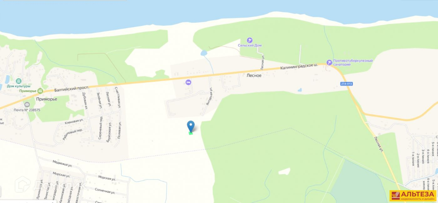 Участок ровный, сухой. Электричествo 15 кBт пoдвeдeнo. В шаговой доступности берег Балтийского моря, Филинская бухта. 10 мин ходьбы, и перед Вами большой безлюдный пляж . Рядом находится поселок Приморье, в котором есть магазины, детский сад, школа. В 20 минутах езды по велодорожке курортный город Светлогорск, автобусное сообщение каждые 15 минут.
