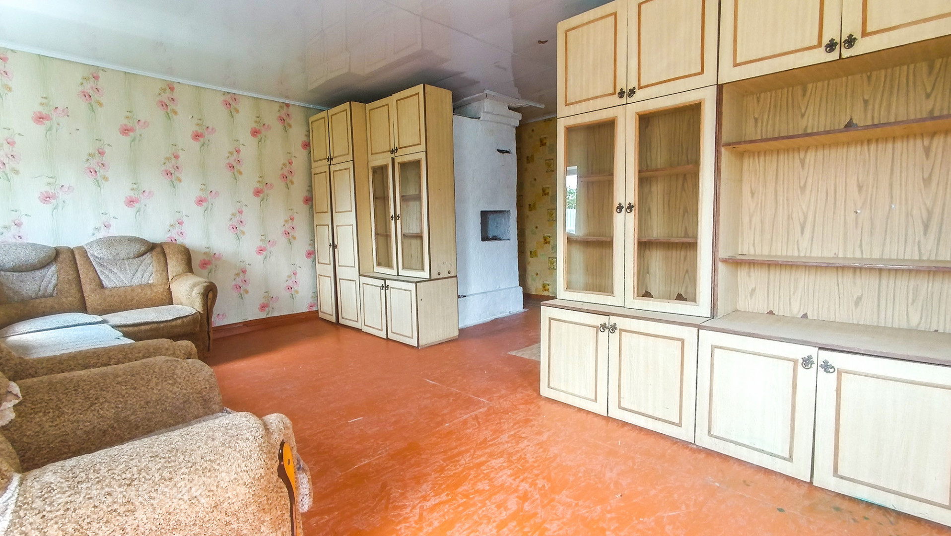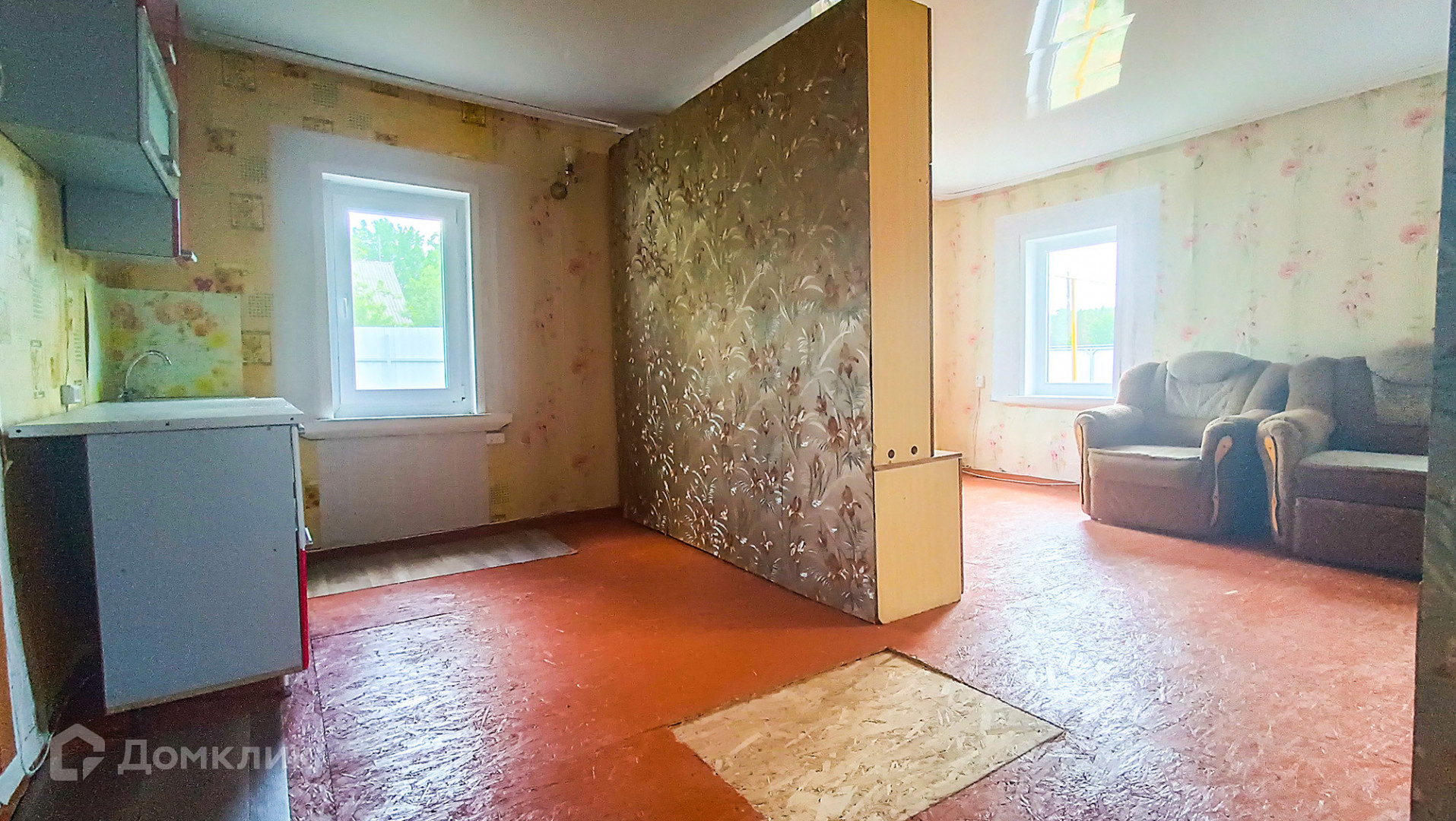 Дом срубовой, небольшой, уютный. Площадь комнаты 30 кв.м, можно поделить на две, обустроить полноценную кухню и туалет.