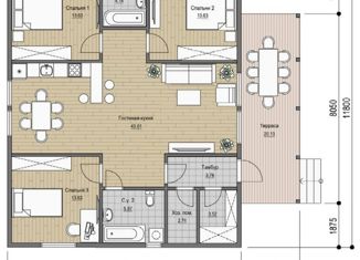 Общая площадь: 80 м2