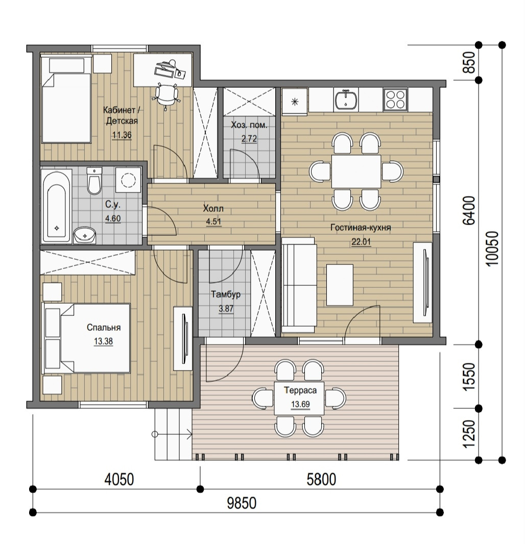 Площадь данного дома 76.4 м². Кухня-гостиная с шикарными панорамными окнами, которые сделают Ваш дом максимально светлым, уютным и комфортным для Вас. В зимнее время, дом сохраняет тепло, а летом прохладу. В доме отличная звукоизоляция.