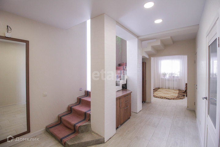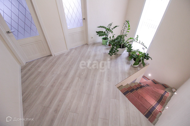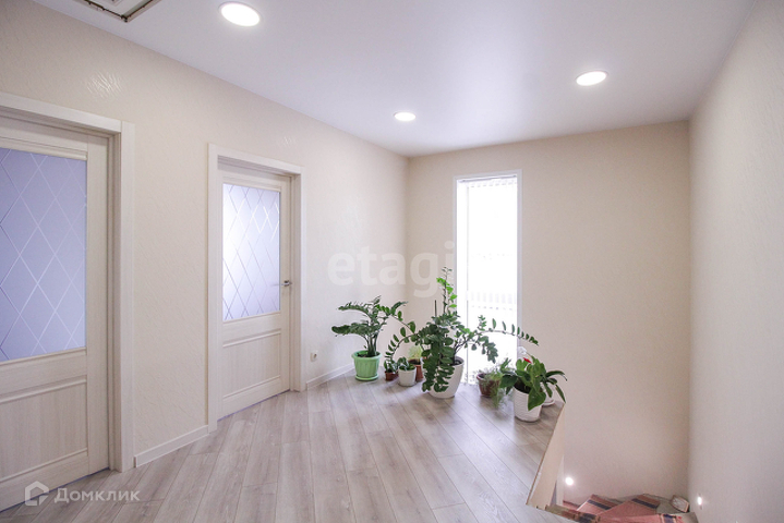 Двери: парадная с остеклением (дублирующая из кашированного пластика), через гараж уличная металлическая. Установлены качественные межкомнатные двери с остеклением, в санузлах глухие. В гараже автоматические секционные ворота.