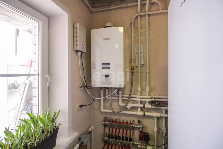 Отопление: двухконтурный котел «Bosch», первый этаж – теплые полы с регулировкой по зонам и радиаторы, второй этаж – радиаторы.