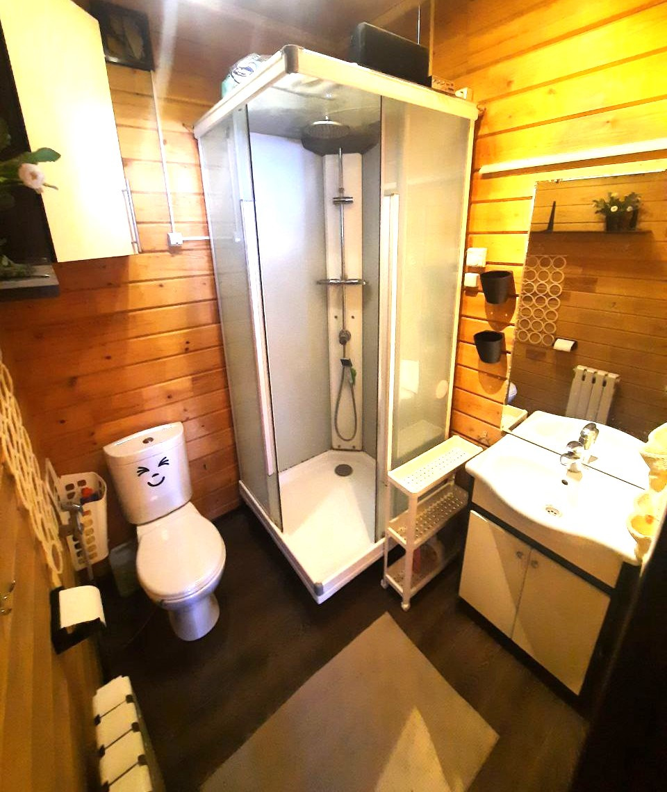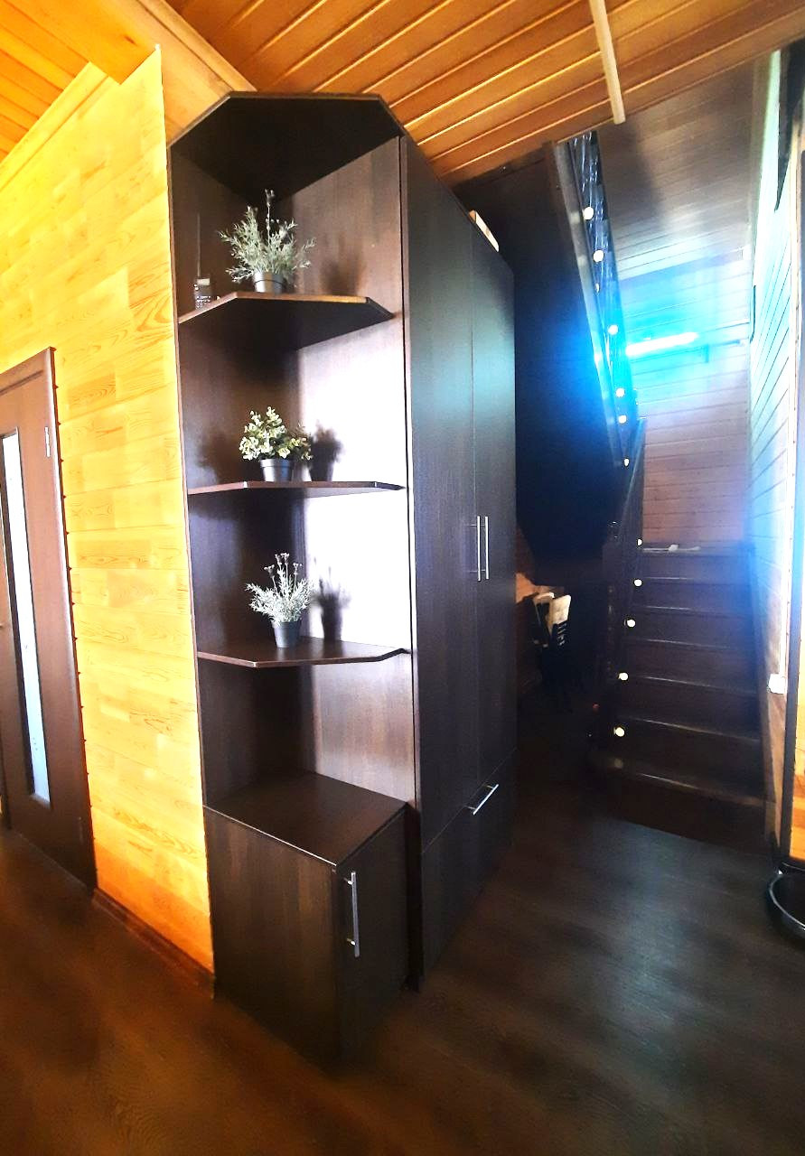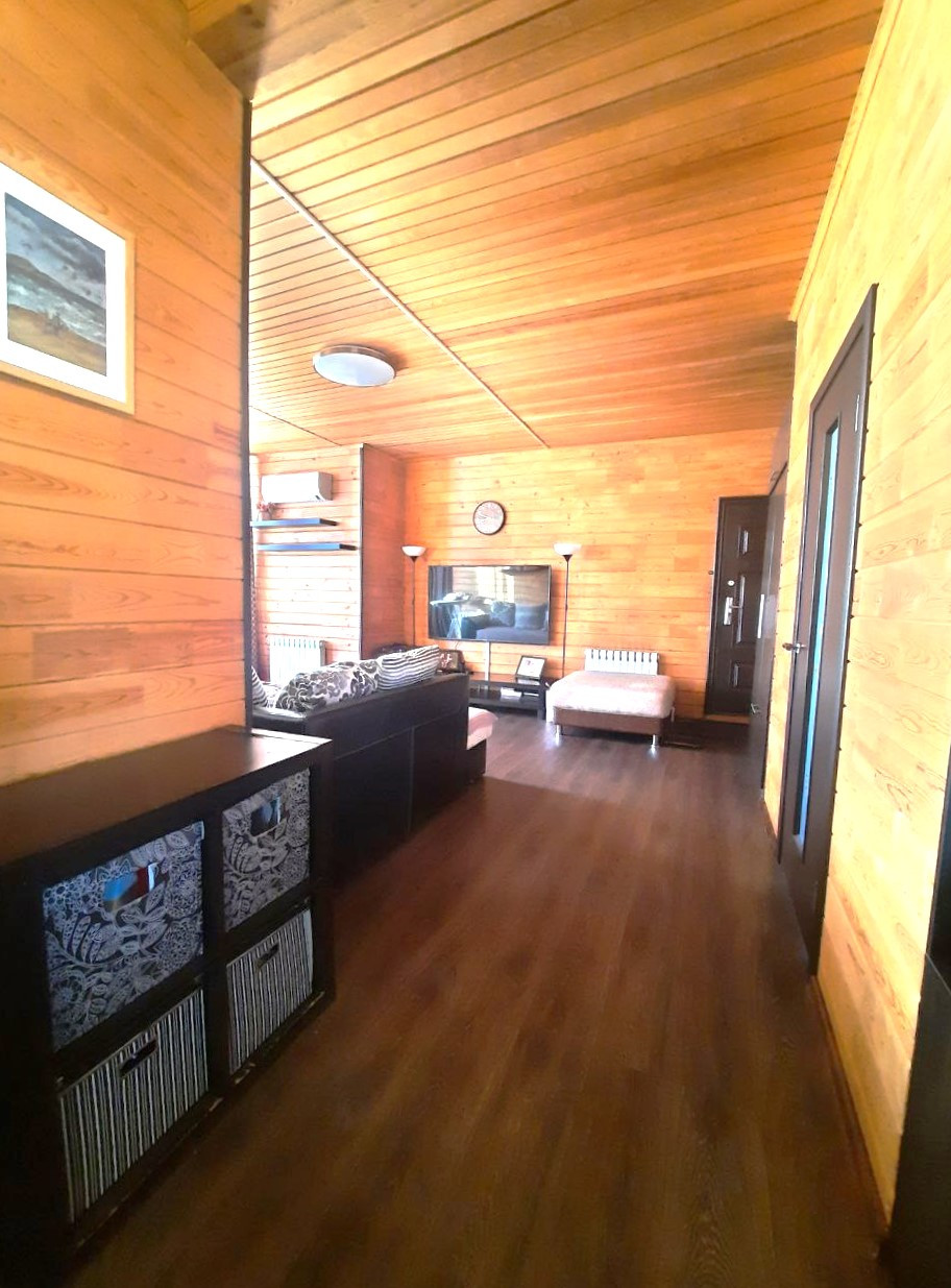 Дом выполнен из клееного профилированного бруса, добротный, красивый, в доме стоит приятный аромат дерева!