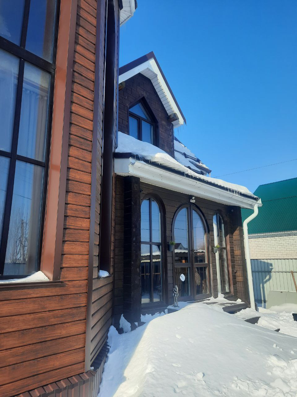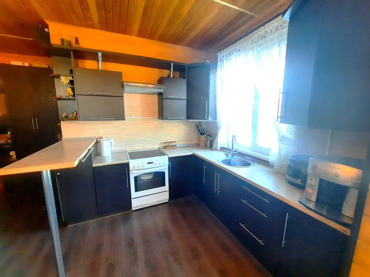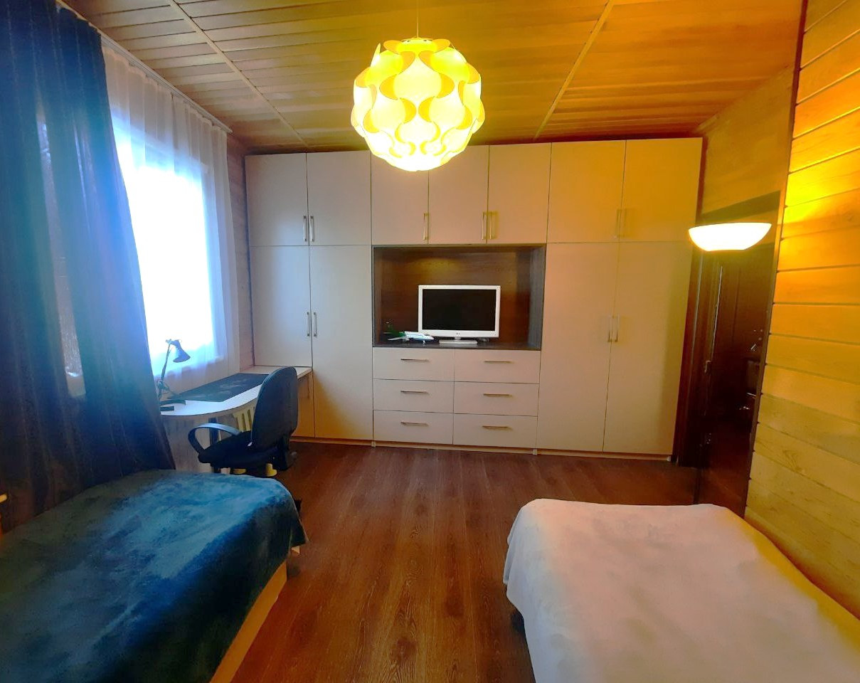 Дом выполнен из клееного профилированного бруса, добротный, красивый, в доме стоит приятный аромат дерева!