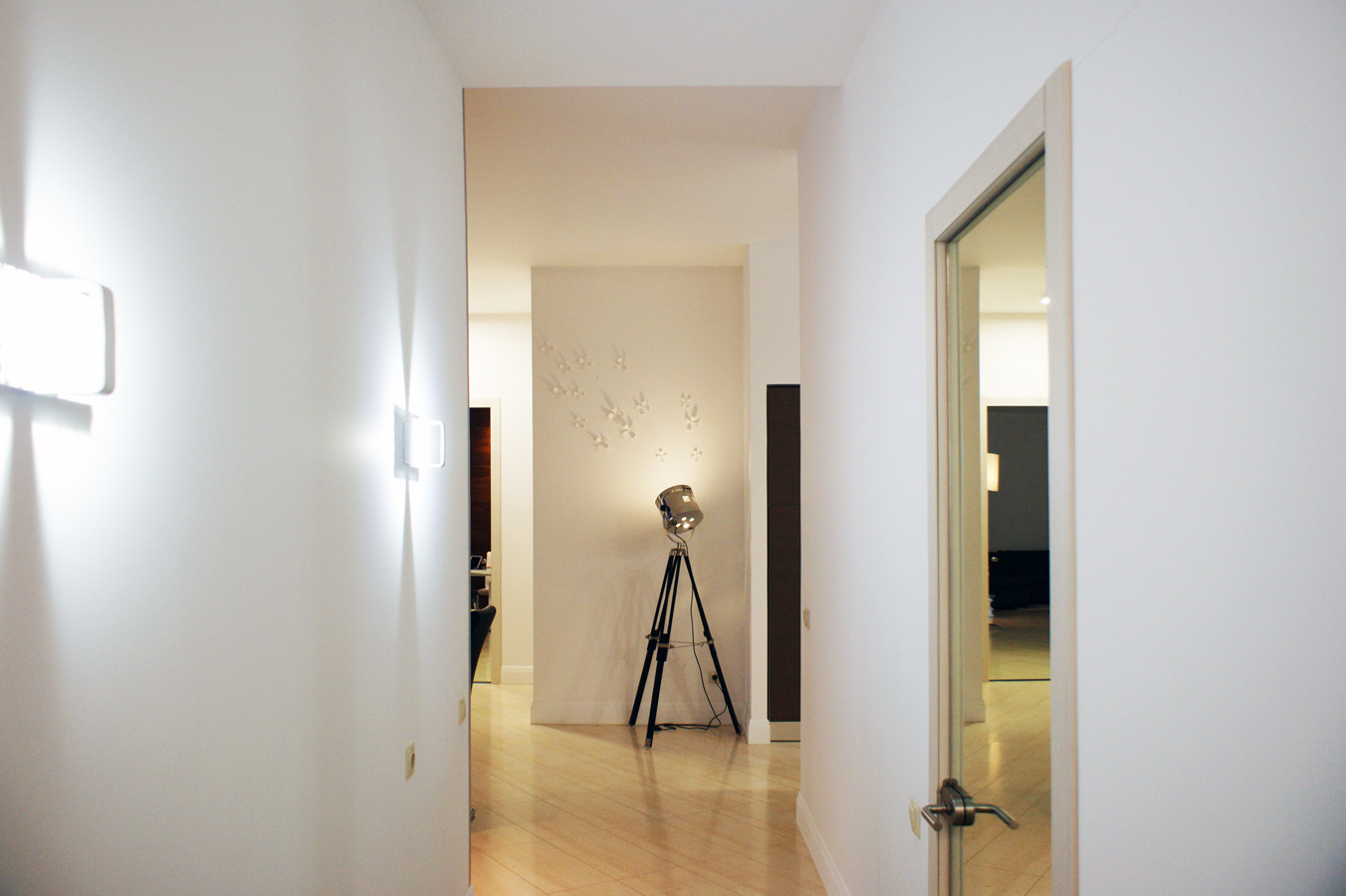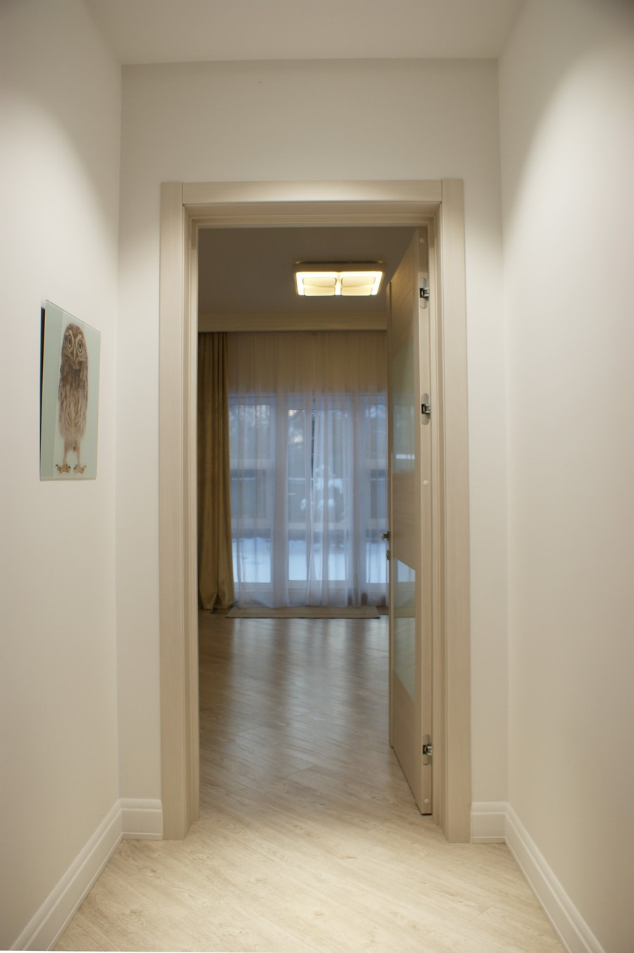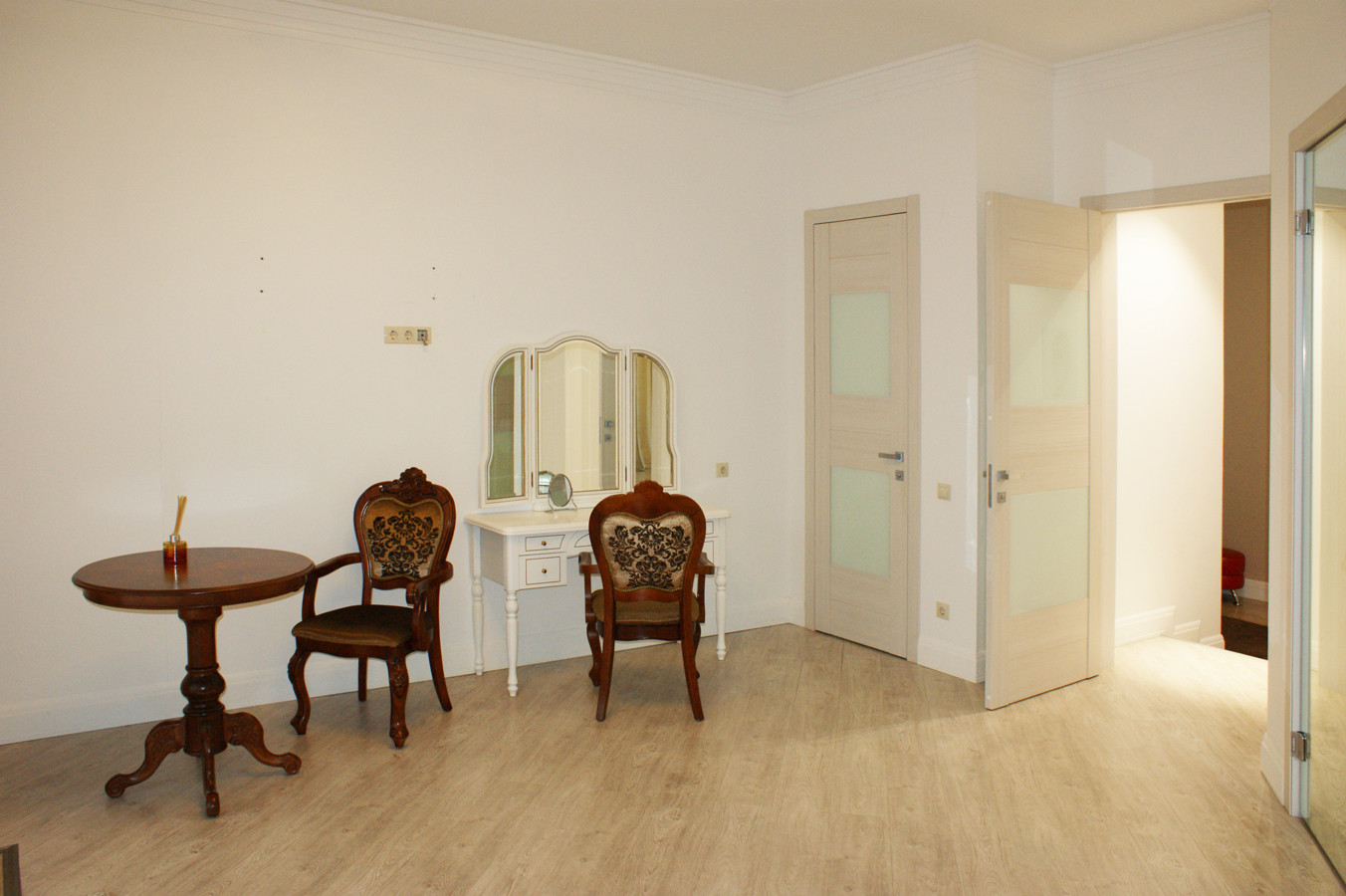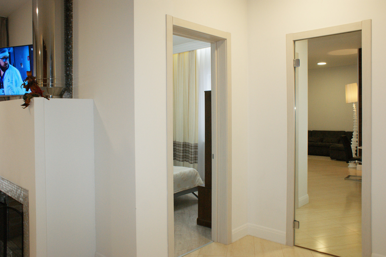 4 изолированные комнаты: большая спальня(25 кв.м.) со своей гардеробной комнатой, которую можно переделать в спальню для ребёнка и санузлом (с ванной), с выходом на террасу, две спальни - одна с собственным санузлом, рядом с которыми общая гардеробная комната, кабинет (свободная комната, можно использовать как спальню)