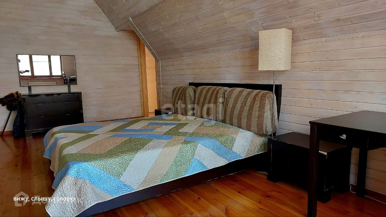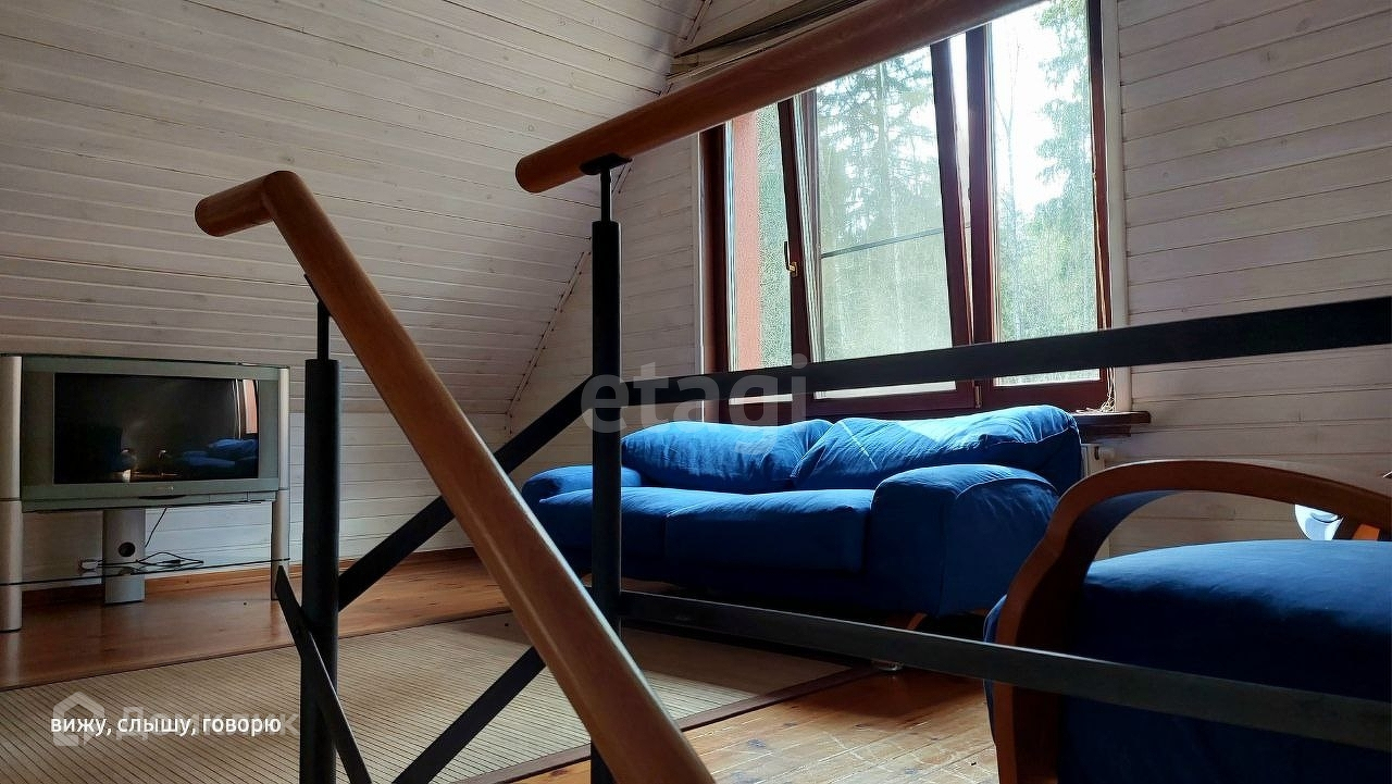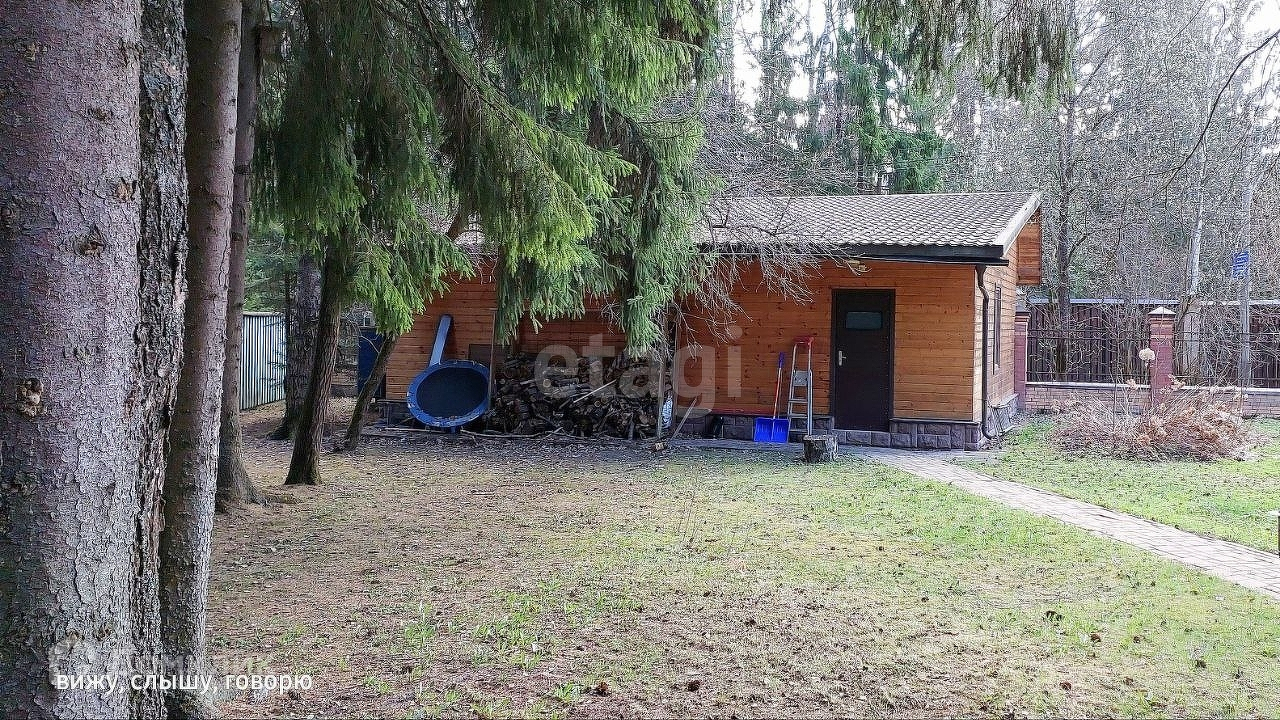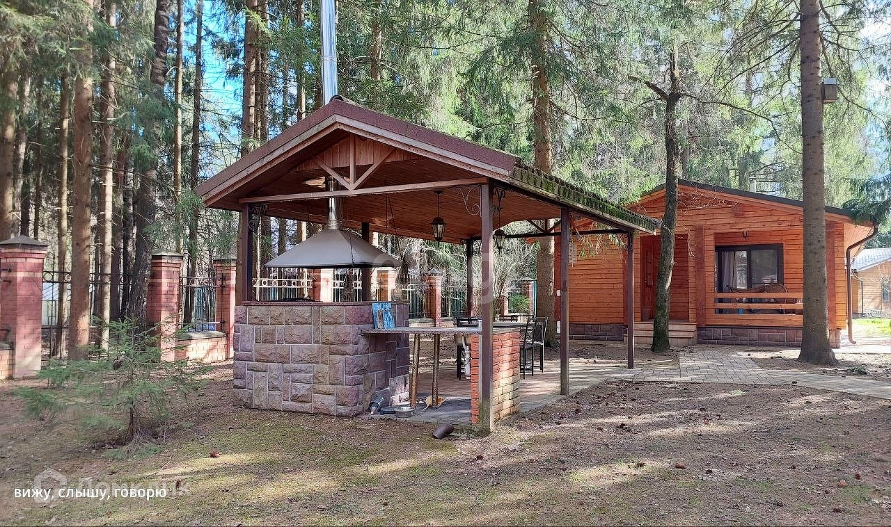На участке, в тихой лесной части поселка и непосредственной близости от берега Икшинского водохранилища, находится несколько жилых и хозяйственных построек: жилой, двухэтажный кирпичный дом 150м², деревянный банный комплекс с гостевой студией, гараж на 2 автомобиля и хоз инвентаря, уютное место для приготовления блюд на открытом огне и большая веранда.