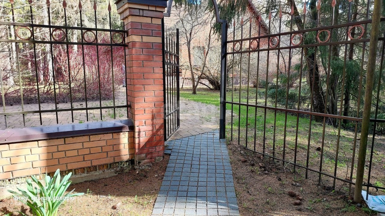 Участок огорожен кованным забором.