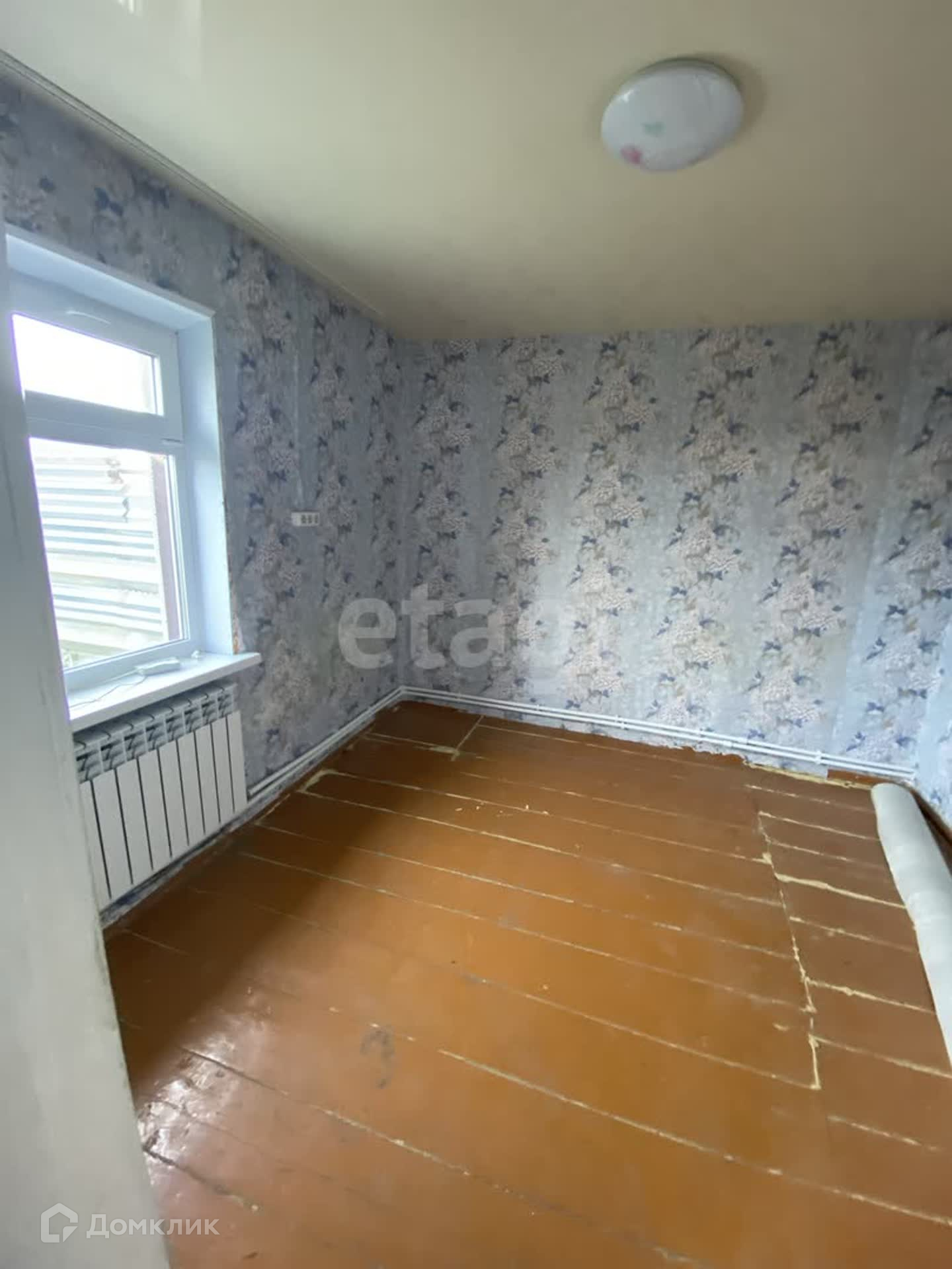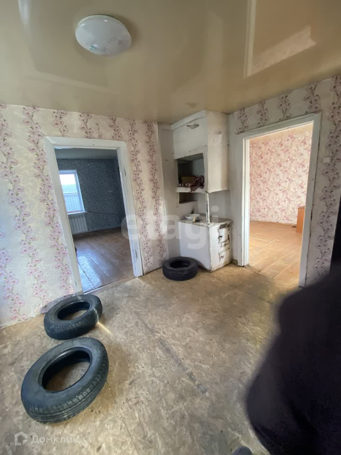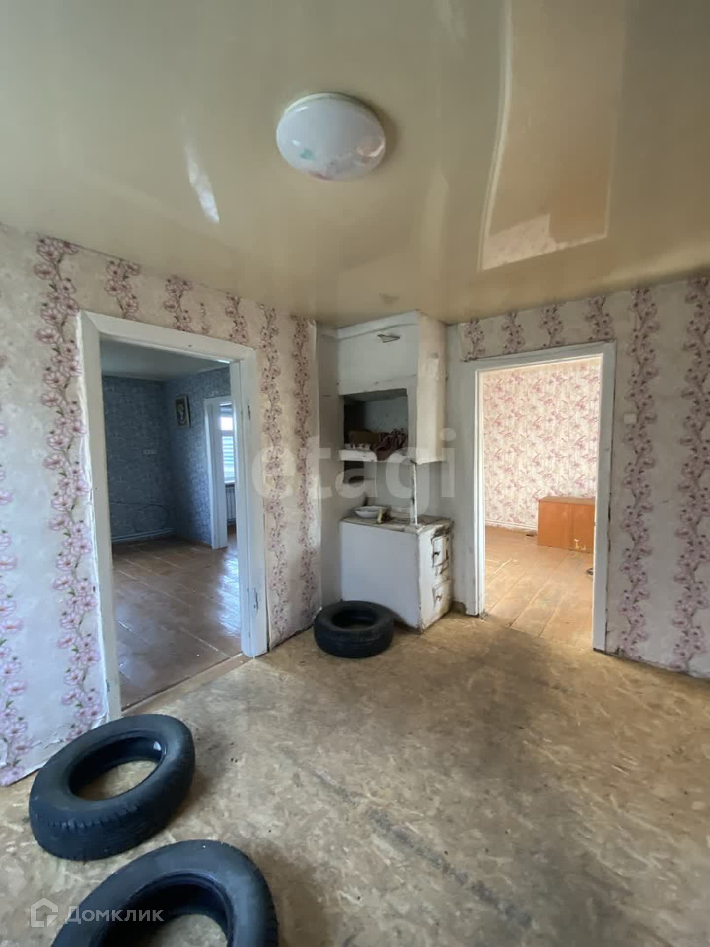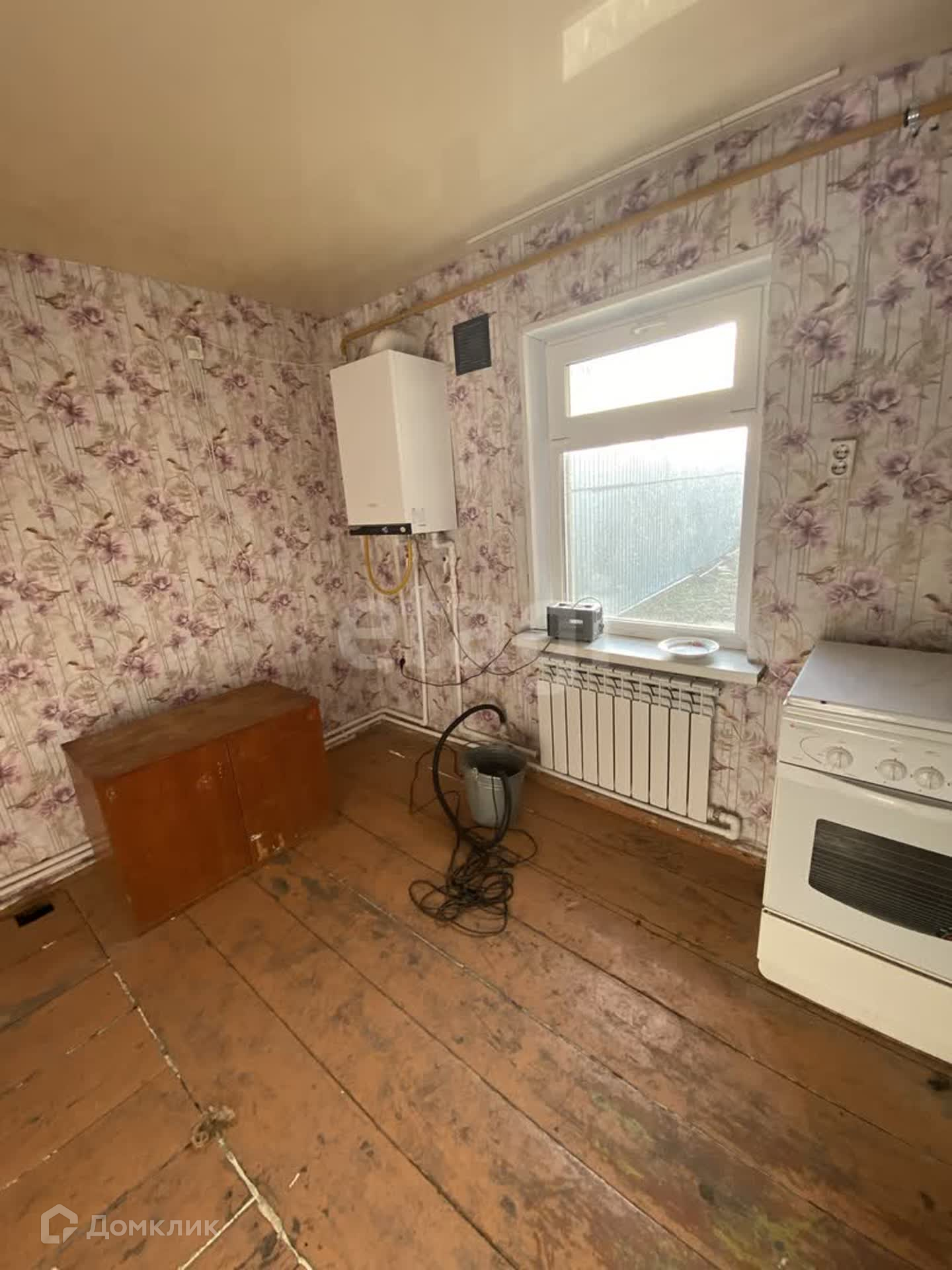 В доме три комнаты, установлено газовое отопление, новый газовый котел, натяжные потолки, наклеены свежие обои. Крыша дома из шифера.