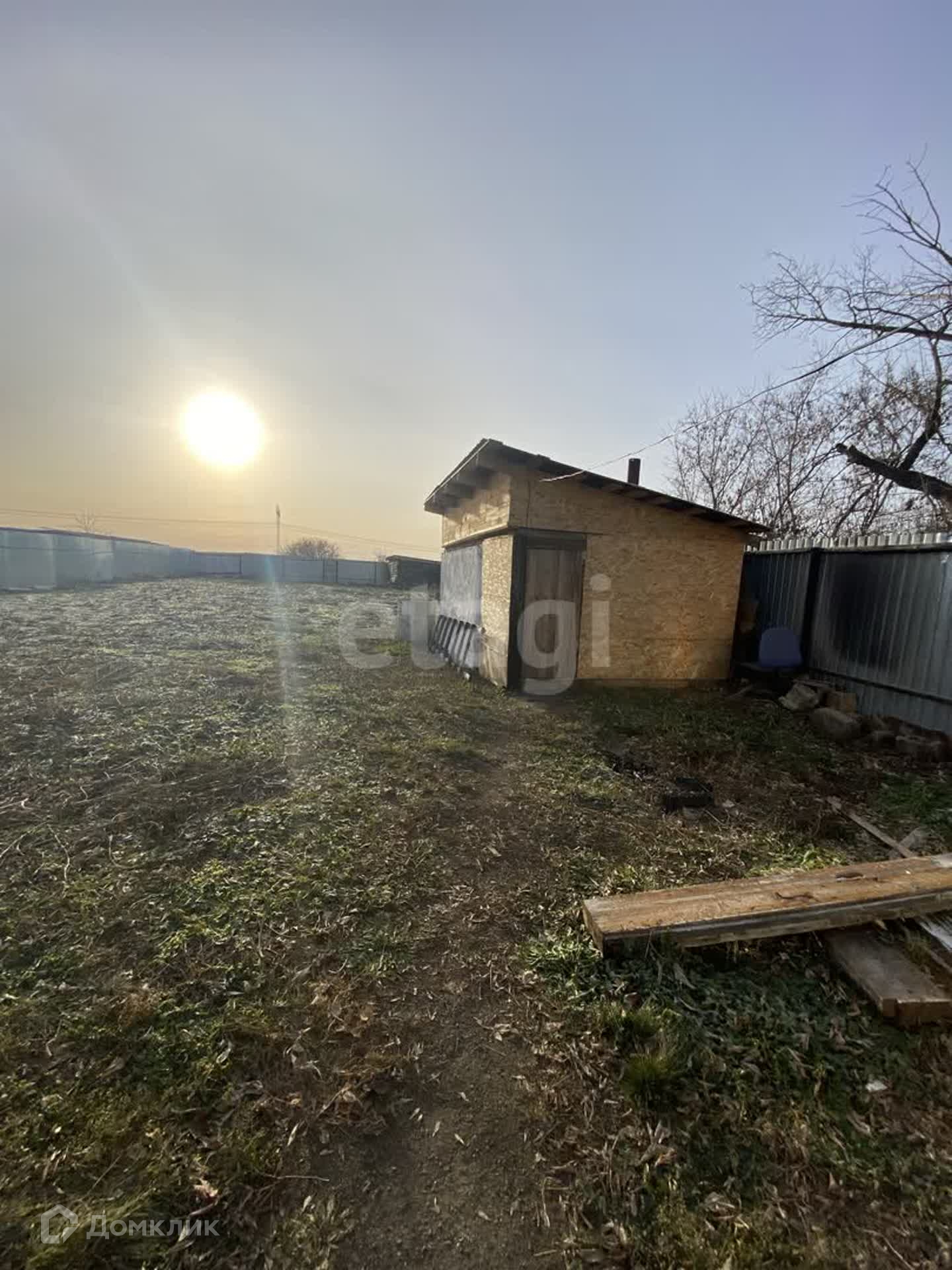 Участок огорожен профлистом.