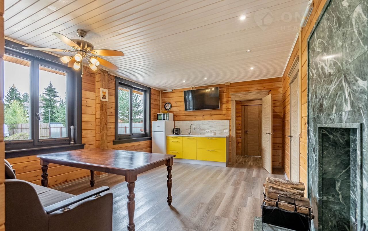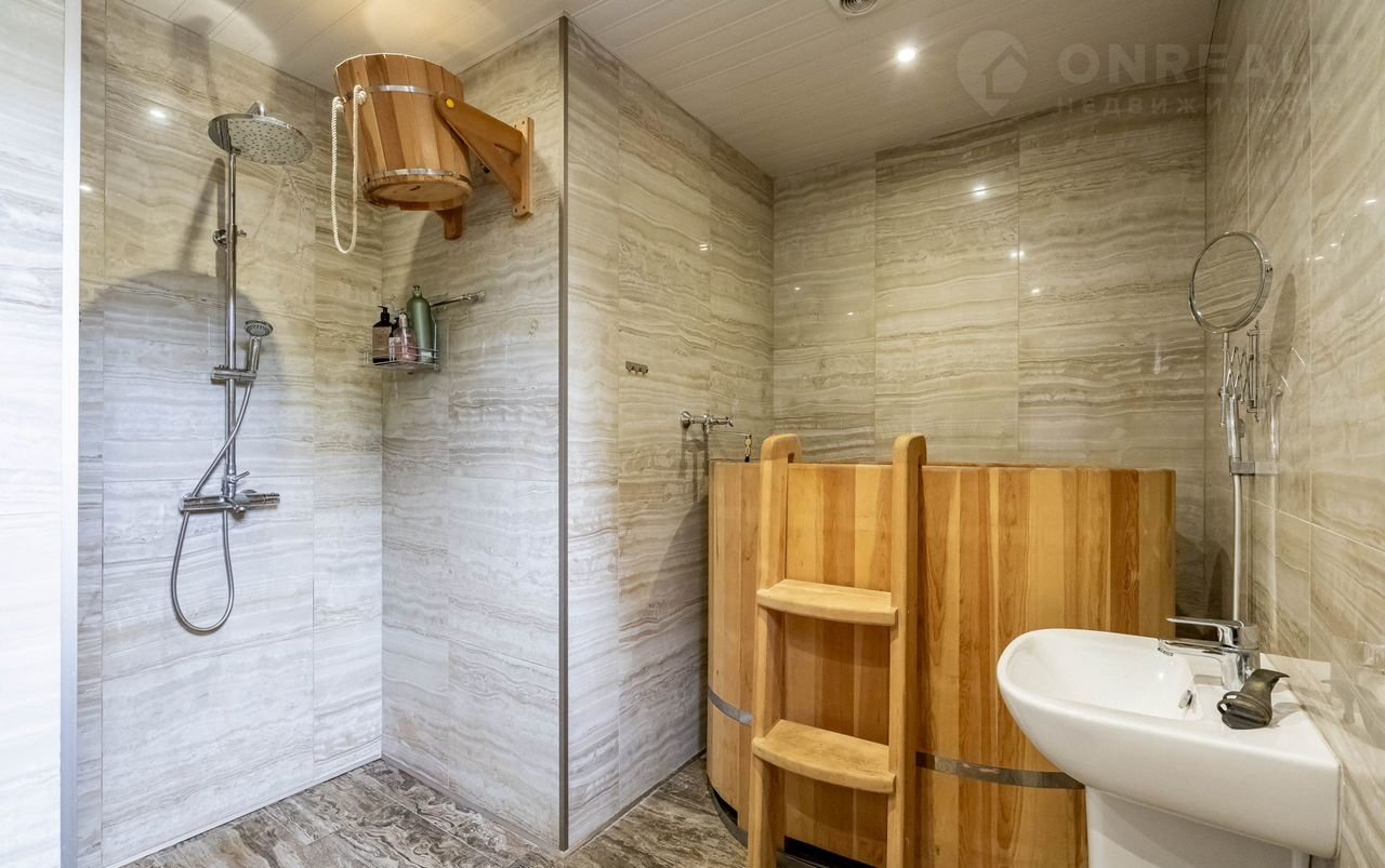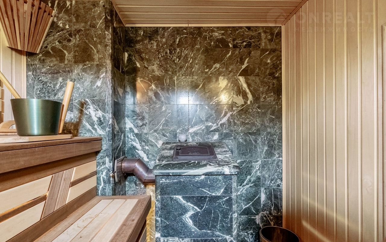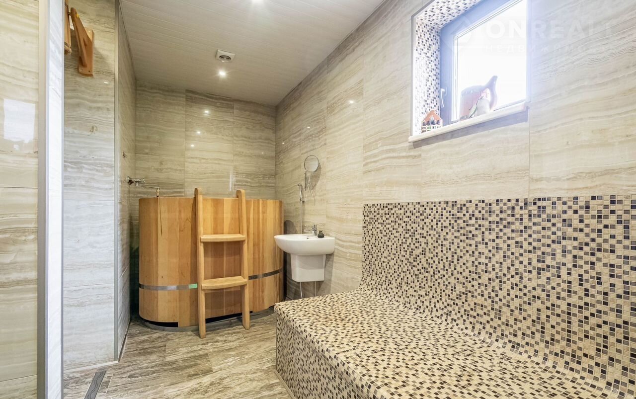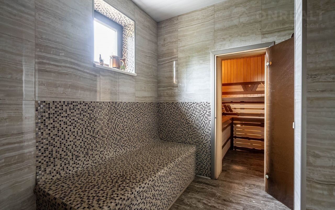 Дом-баня площадью 68.85 м2., выполнен из кедрового бруса привезенного из Новосибирска, кровля - керамическая черепица фирмы ВRААS, к дому подведено 15 квт. света, газ, и очистное оборудование для воды, печь выполнена из натурального камня, в доме есть помещение спальни. Имеется чердачное помещение для хранения вещей и веников. Дом оснащен новой современной мебелью и всей необходимой бытовой техникой. Дом очень светлый и уютный.