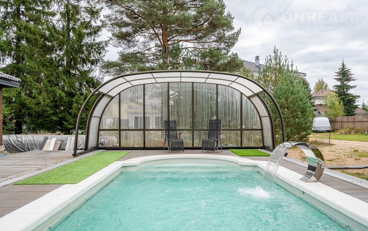 Бассейн круглогодичный, отапливаемый газом, длиной 7метров, укрывной из стекла.