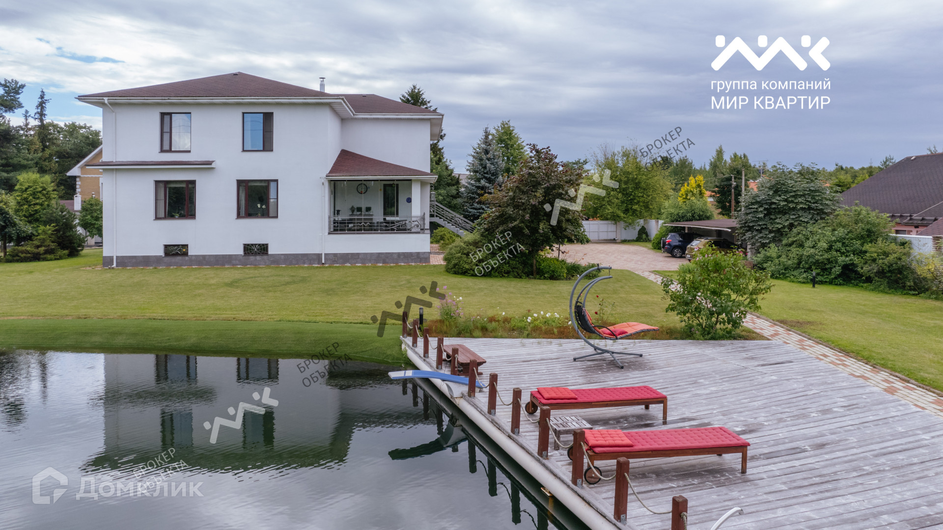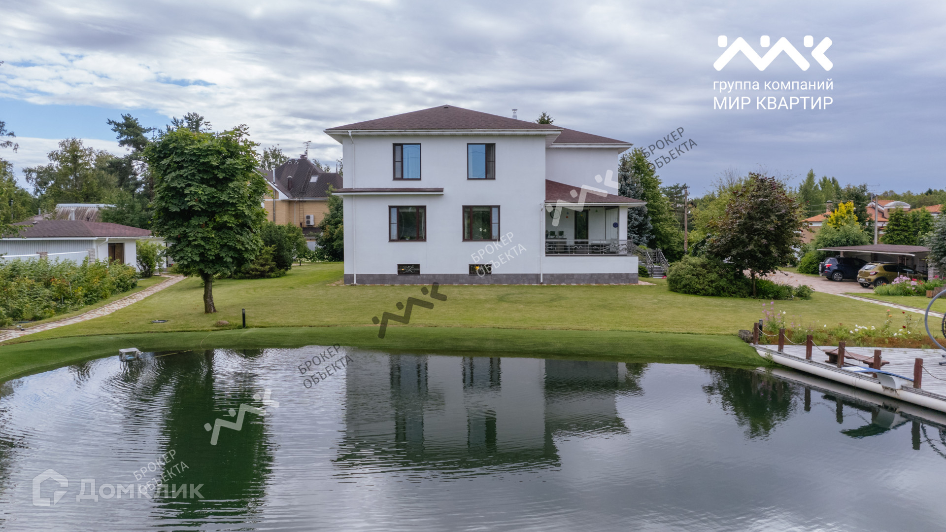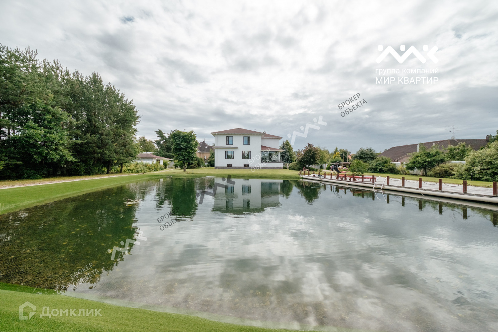 На участке живописный водоем, который по праву  может называться  маленьким озером с системой фильтрации, сохранены сосны, плодовые деревья и кустарники.