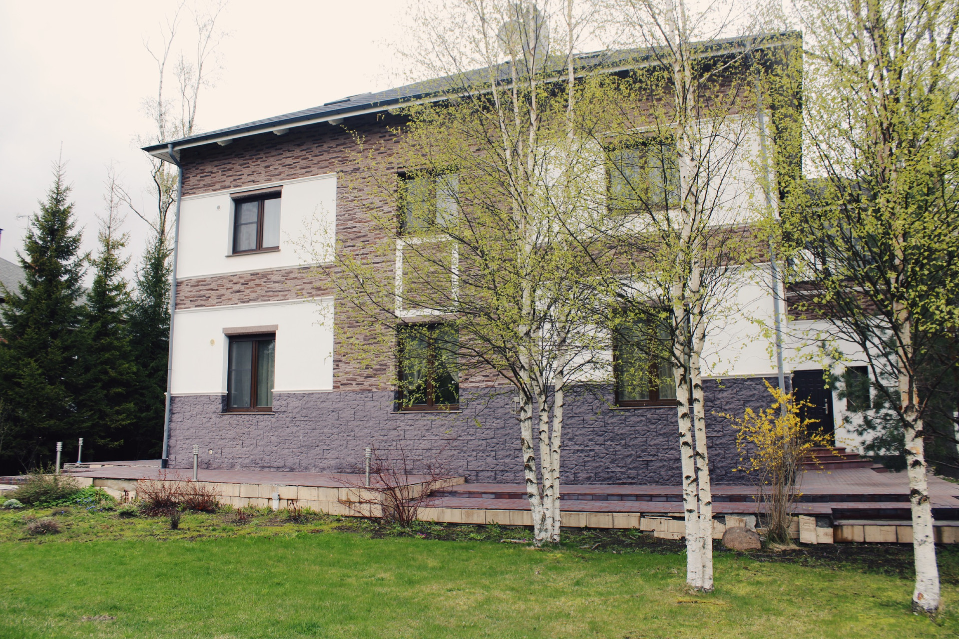 Продажа элитного дома с земельным участком в Приморском районе Санкт-Петербурга, пос. Лисий Нос. Асфальтовый подъезд к дому. Участок ИЖС, выполнены ландшафтные работы, на участке большой пруд для купания, беседка, место для загара, хоз. постройка (сарай 50.9 кв.м.).