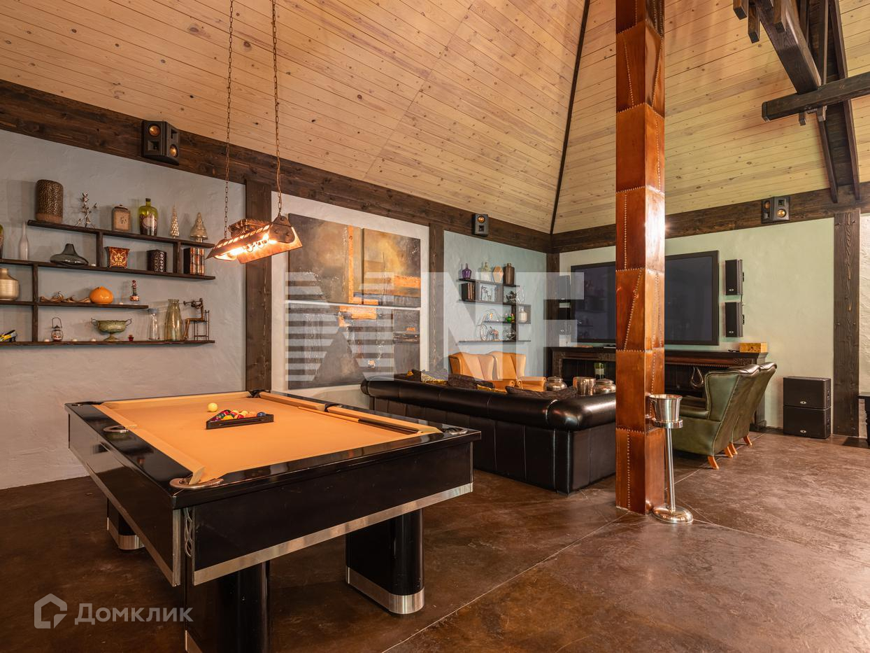 Основной дом (440,9 кв.м) включает гостиную, кухню-столовую, кабинет, игровую комнату, холл и санузел на первом этаже; мастер-спальню с ванной комнатой и гардеробной, детскую комнату с санузлом на втором этаже; сауну, хозяйственные помещения и системы вентиляции и кондиционирования в цокольном этаже. К дому примыкает кинотеатр.