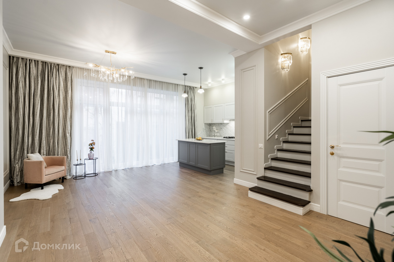 В доме выполнен качественный новый дизайнерский ремонт с применением современных дорогостоящих материалов. Полы – керамогранит и инженерная доска с покрытием дуб. Все окна в доме декорированы текстилем.
