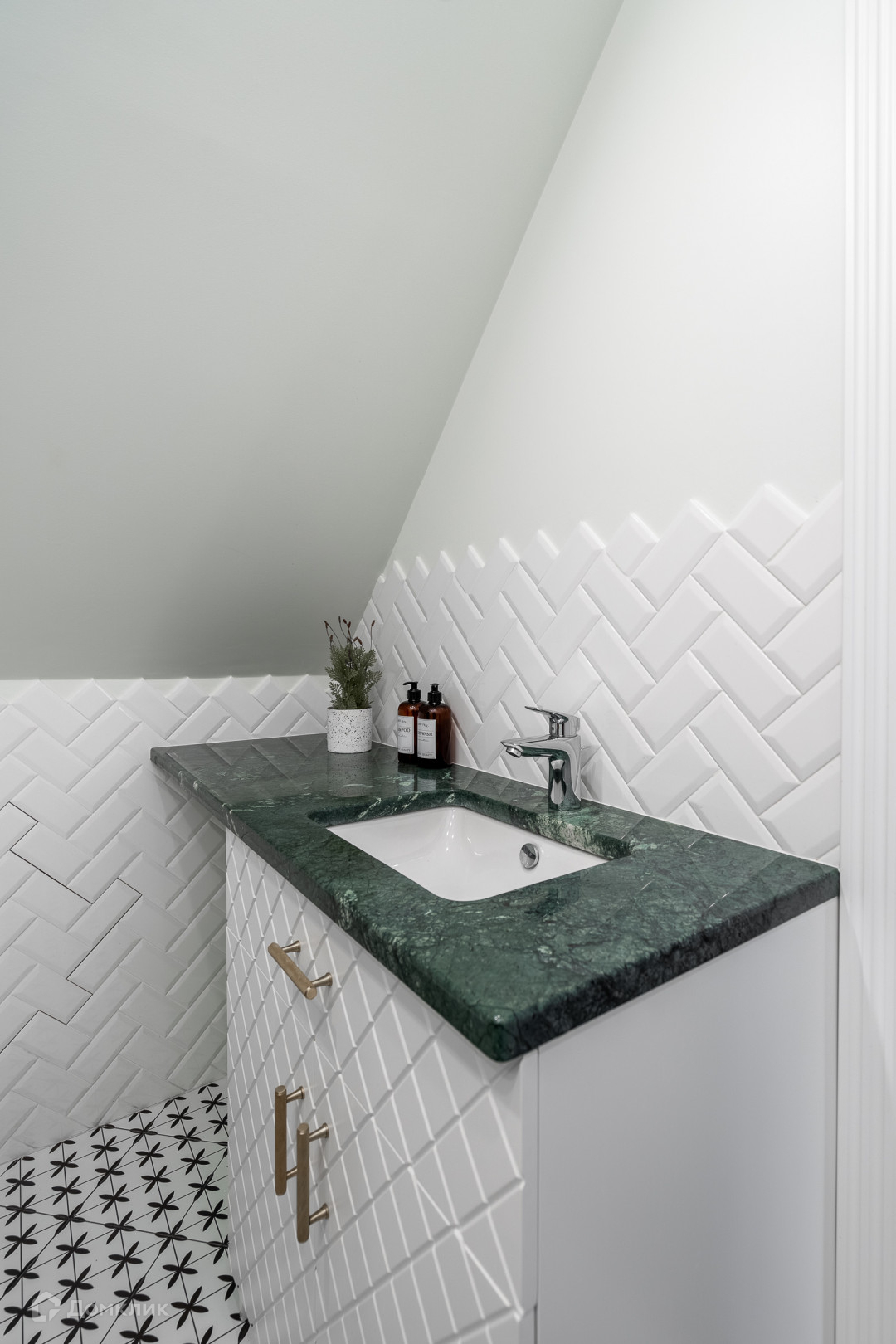 В отделке кухни использован натуральный мрамор. Покрытие кухонного-острова – кварцевый агломерат. Кухня оснащена встроенной техникой: микроволновая печь, варочная поверхность, холодильник, вытяжка, посудомоечная машина, раковина с измельчителем отходов.