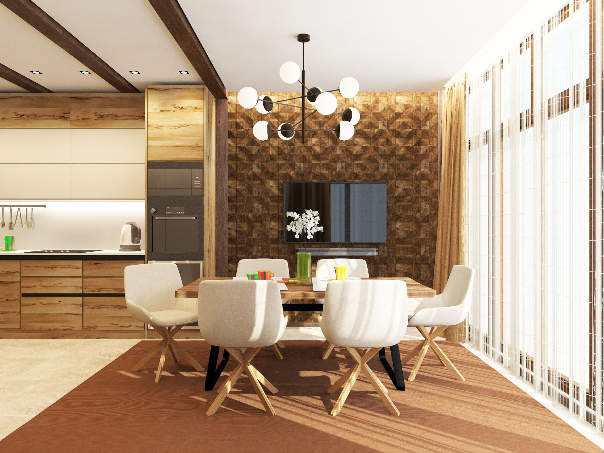 В доме сделан дизайн проект с визуализацией, который включает в себя: на 1 этаже - прихожая, холл, кухня гостиная, хозяйственная комната и гостевой санузел, на 2 этаже - две изолированные комнаты с собственными санузлами и отдельной гардеробной, на 3 этаже - изолированная спальня с санузлом и гардеробной, кабинет, на 4 этаже - терраса 31,2 м2 с отдельным местом для хранения летней мебели.