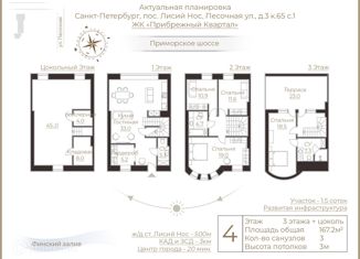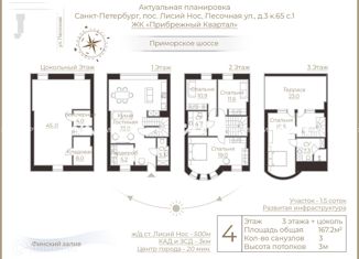 Арт. 33871172 Предлагается к продаже 3-х этажный таунхаус общей площадью 167.2 м2 с собственной террасой 23 м, расположенный в экологически чистой и живописной части Санкт-Петербурга - в коттеджном поселке «Прибрежный Квартал». Территория комплекса более 5 га в Лисьем Носу рядом с Финским заливом идеальна для тех, кто мечтает жить в современном город... |