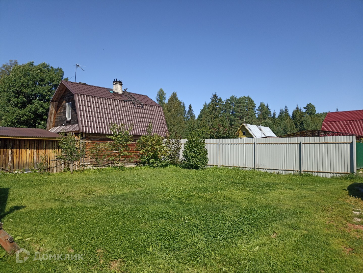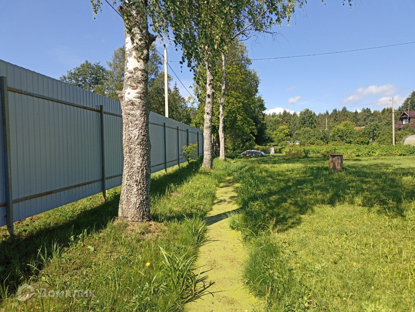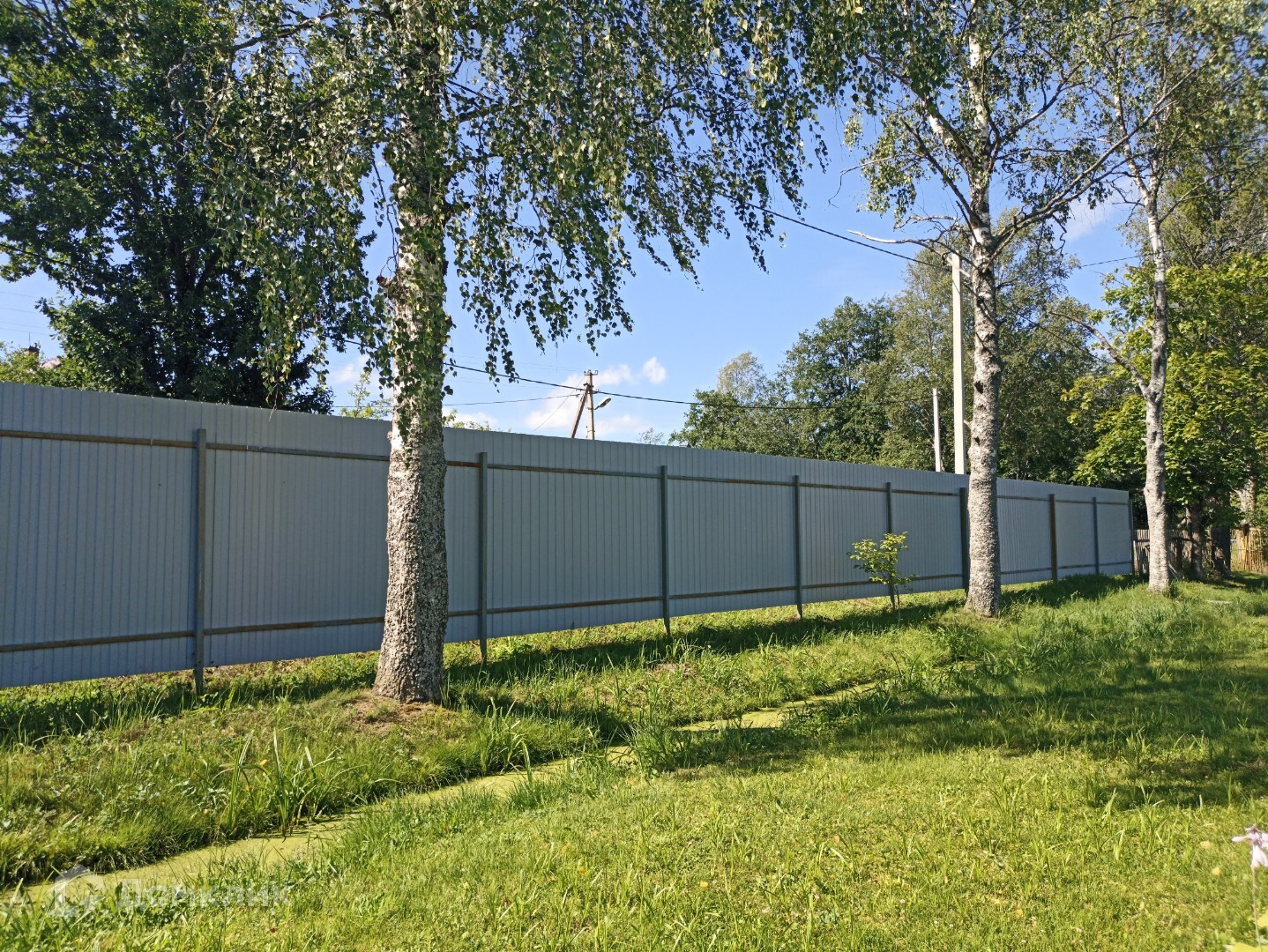 -огорожен со стороны улицы и двора профнастилом (есть возможность сделать въезд с шоссе),рабица с одной стороны с соседями