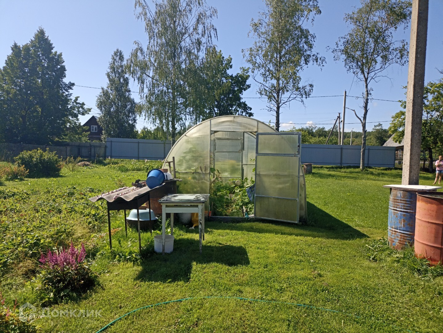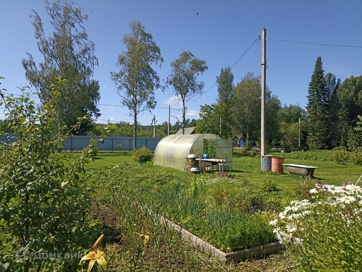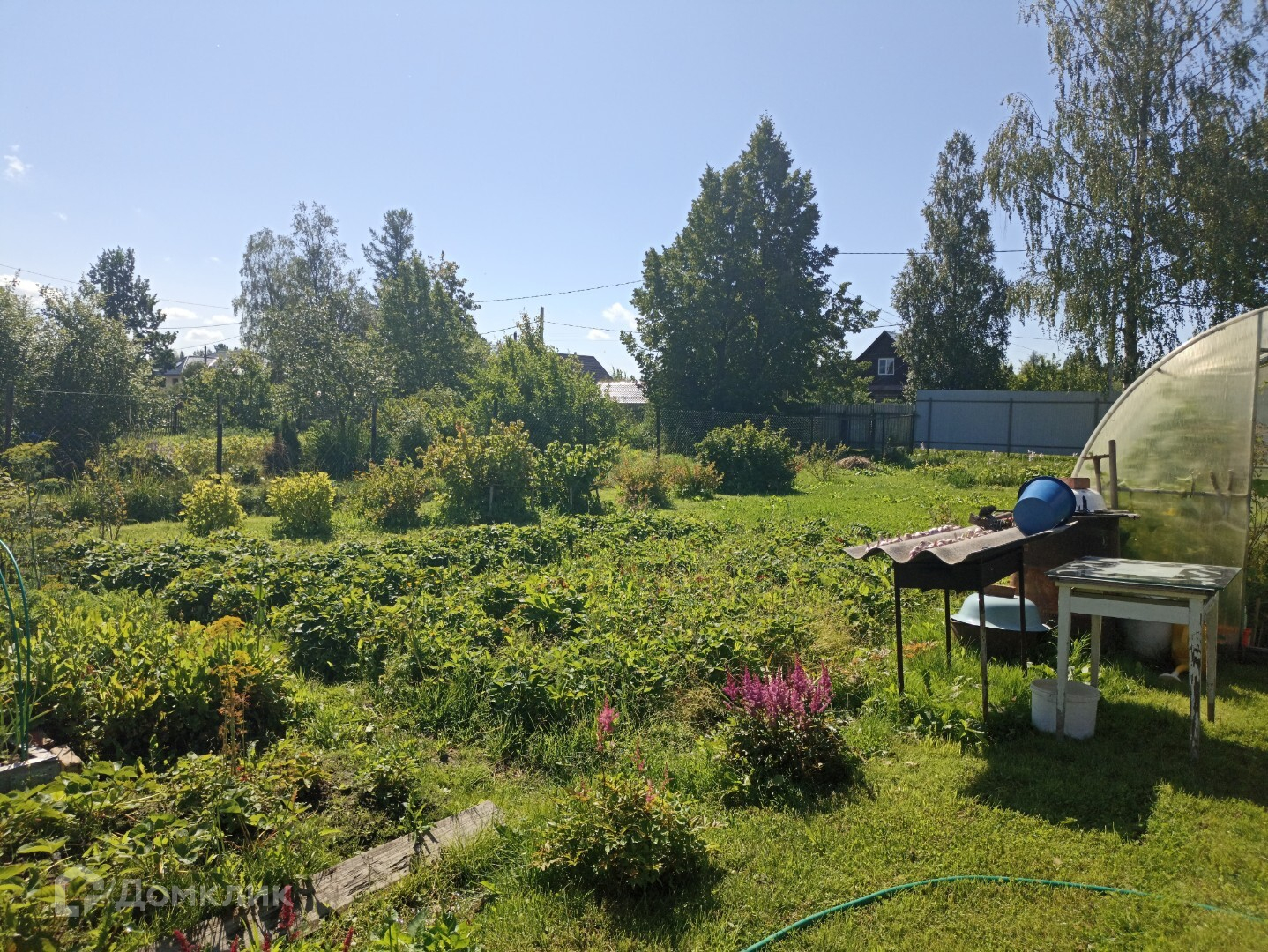 -имеются разработанные грядки ,садовые деревья, парник