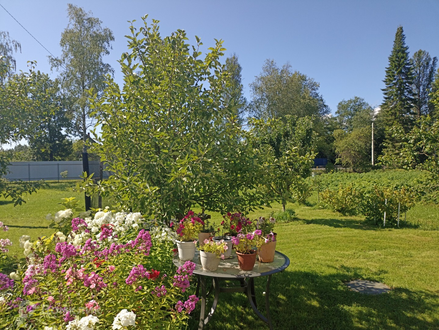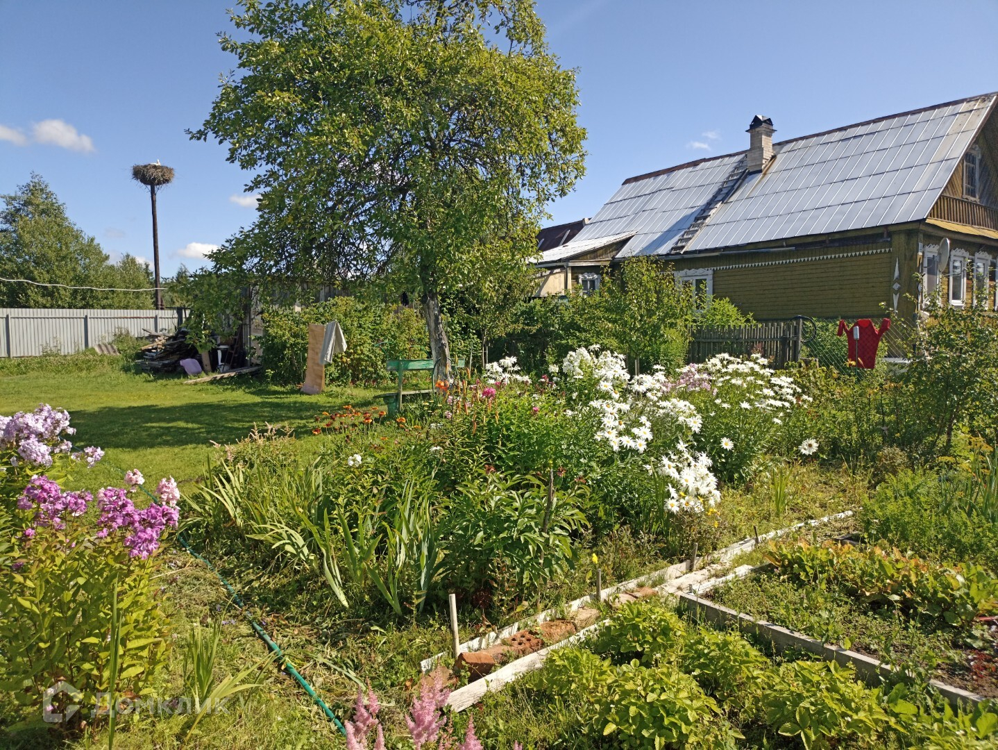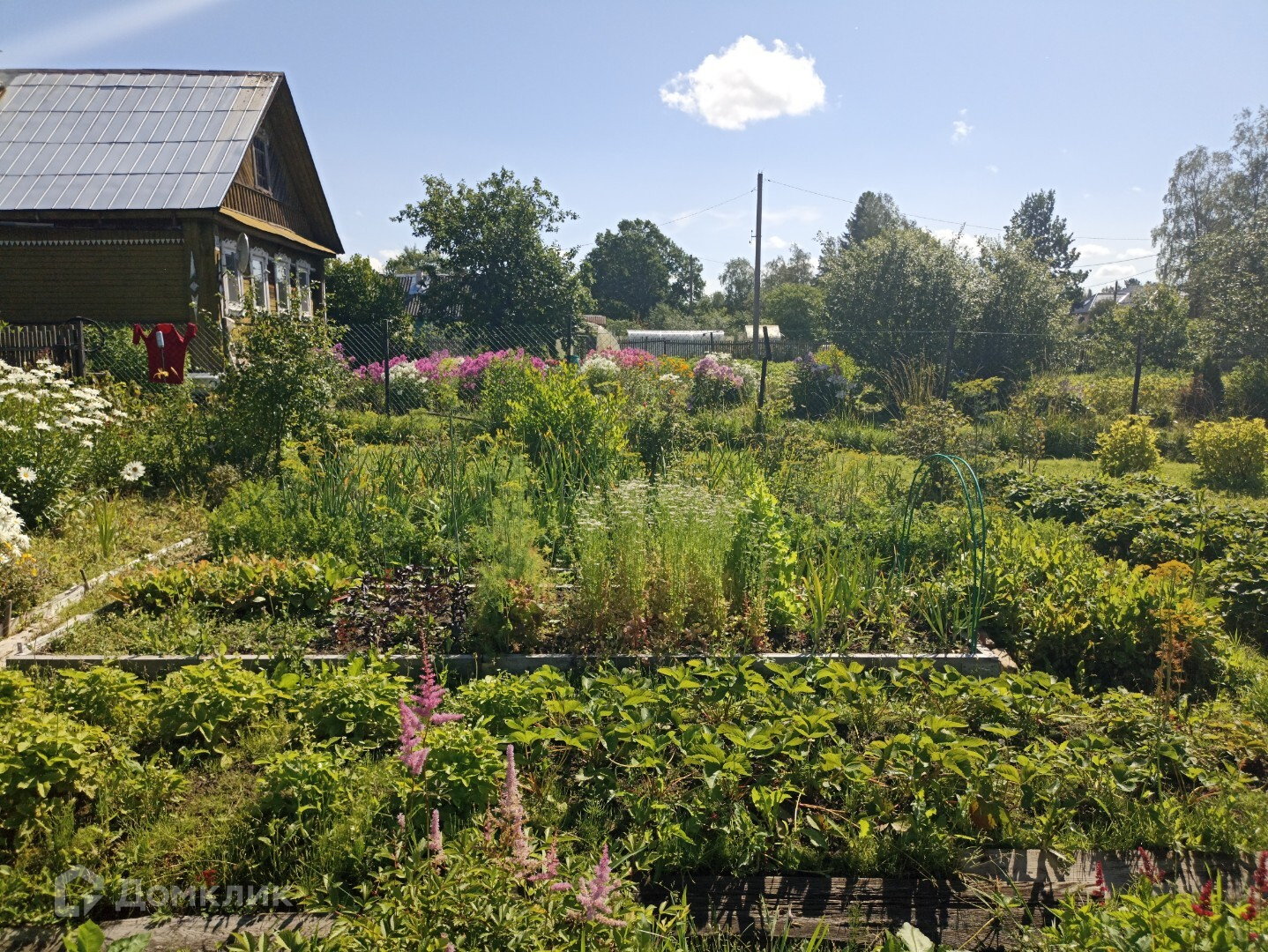 -имеются разработанные грядки ,садовые деревья, парник