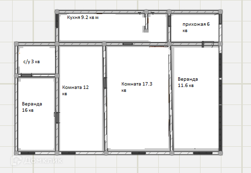 Жилая площадь 29.9 м2