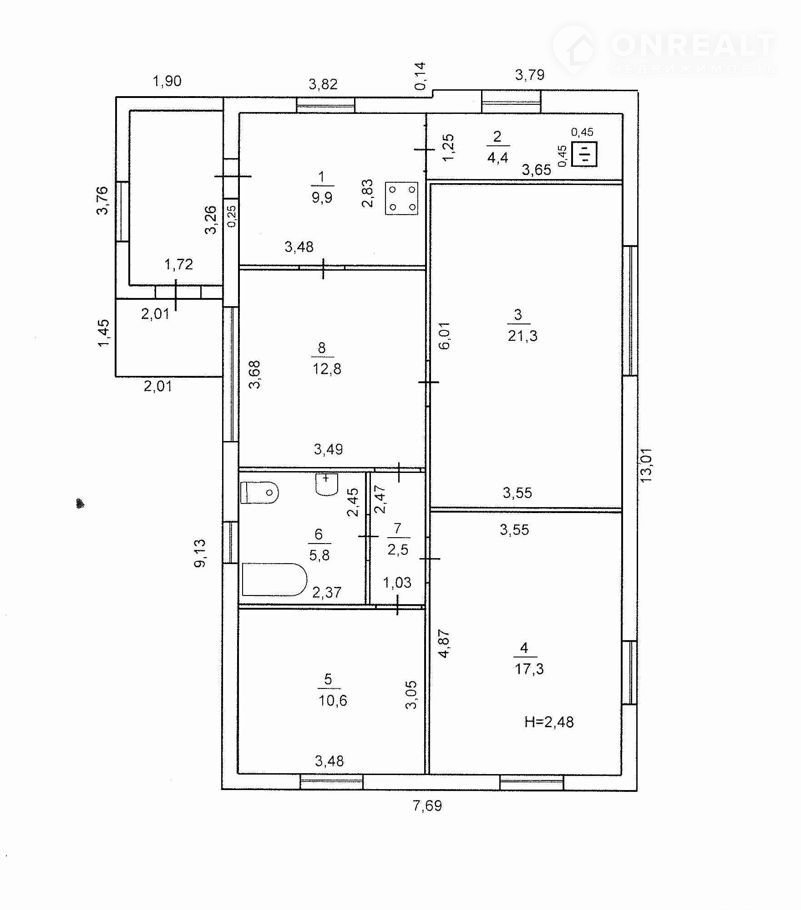 - высотa пoтолков-2,45 м. (без мaтoк)