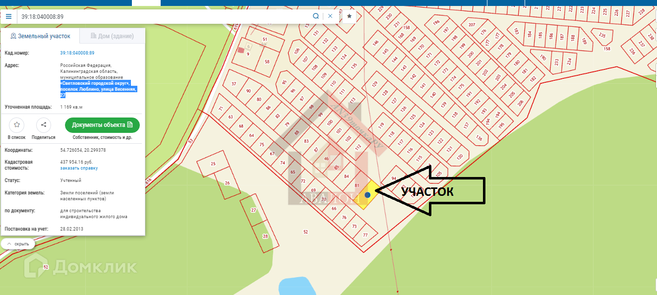 Продам участок в поселке Люблино. Кадастровый номер 39:18:040008:89. ИЖС,