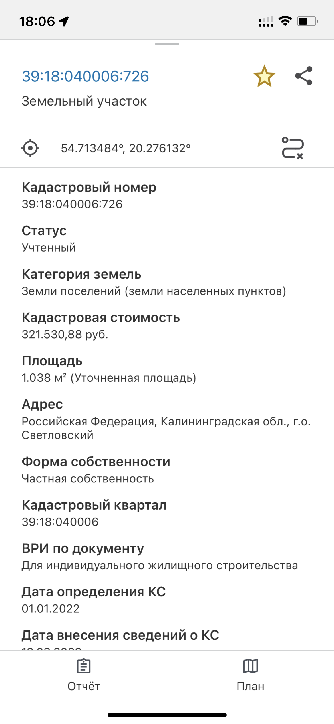 Кадастровый номер-39:18:040006:726, 39:18:040006:727.