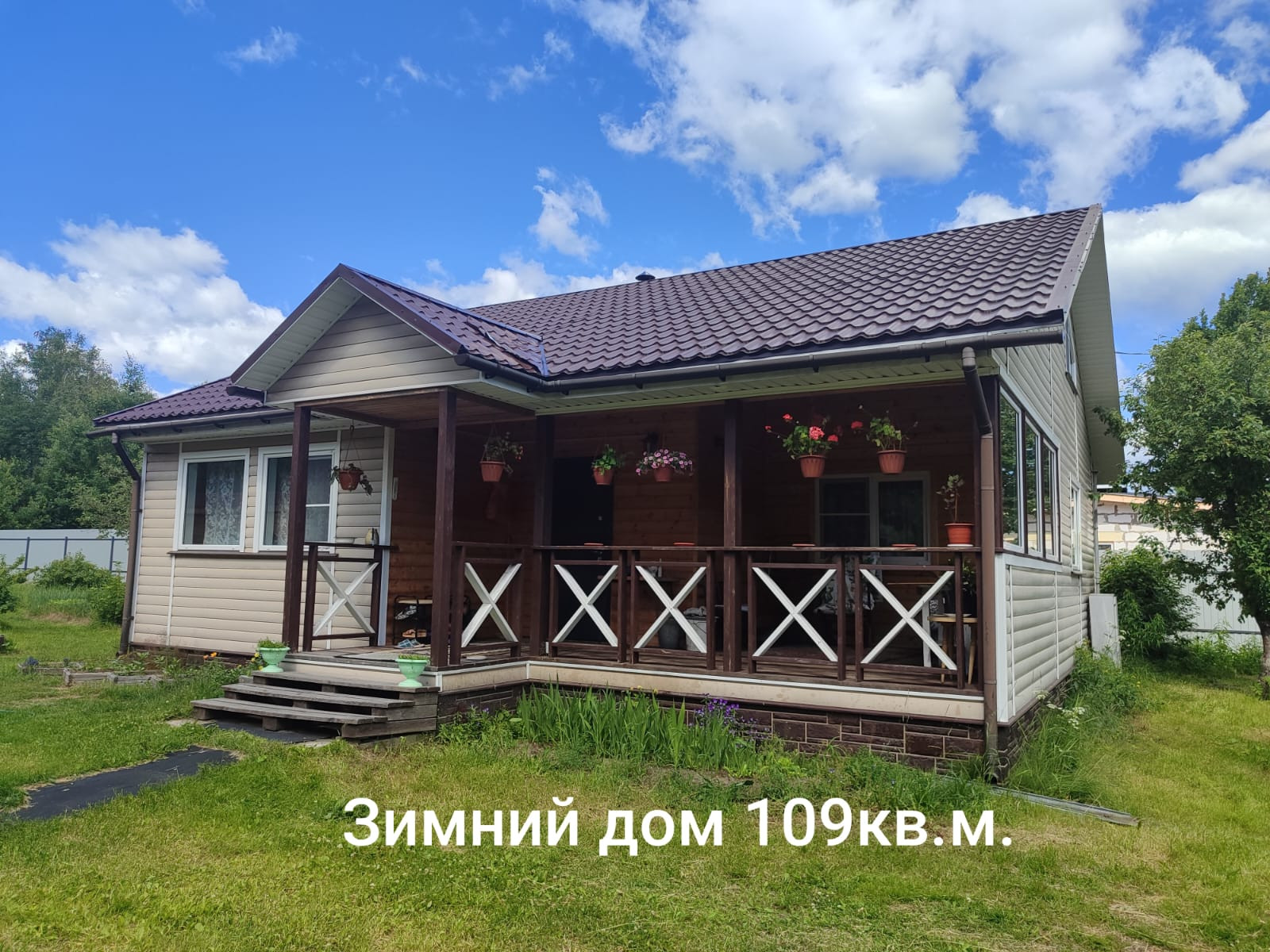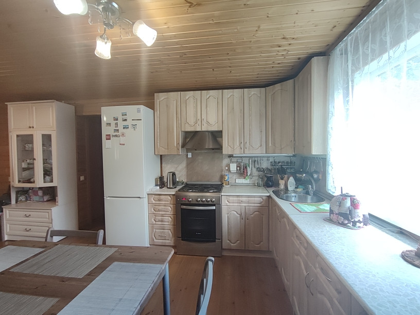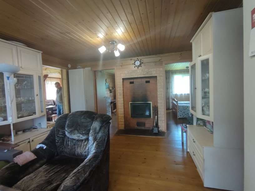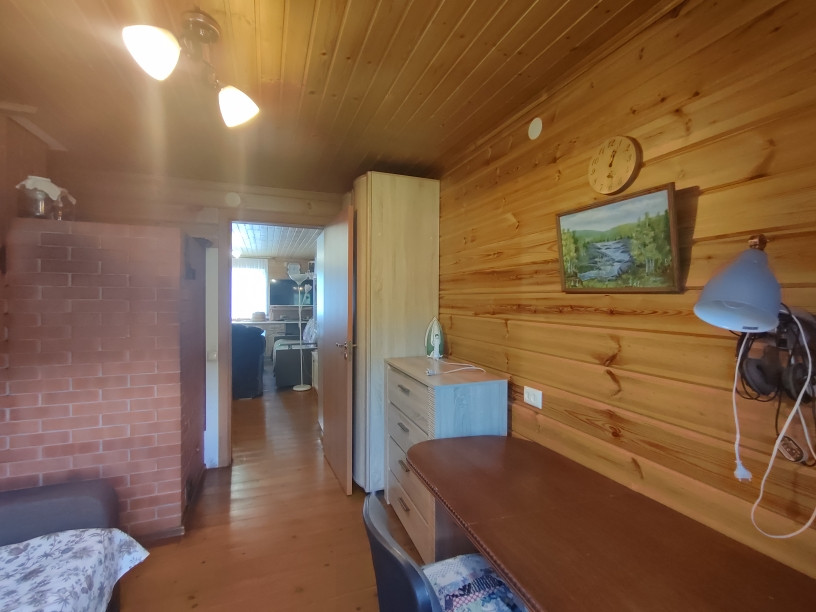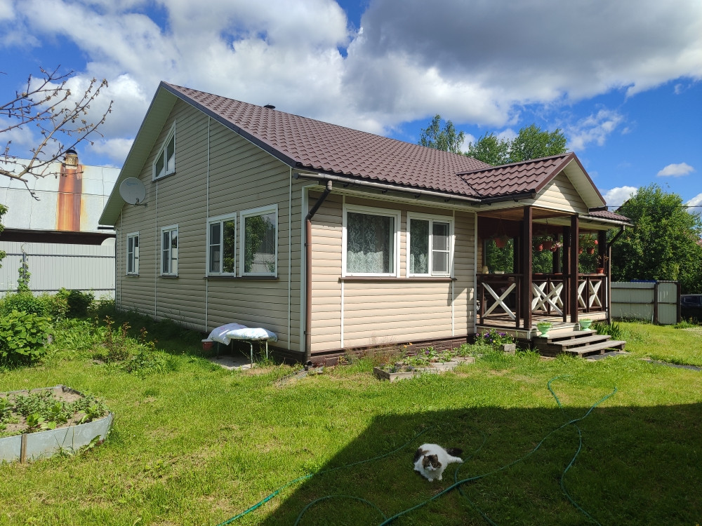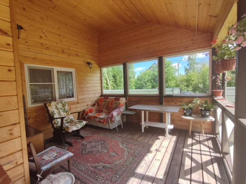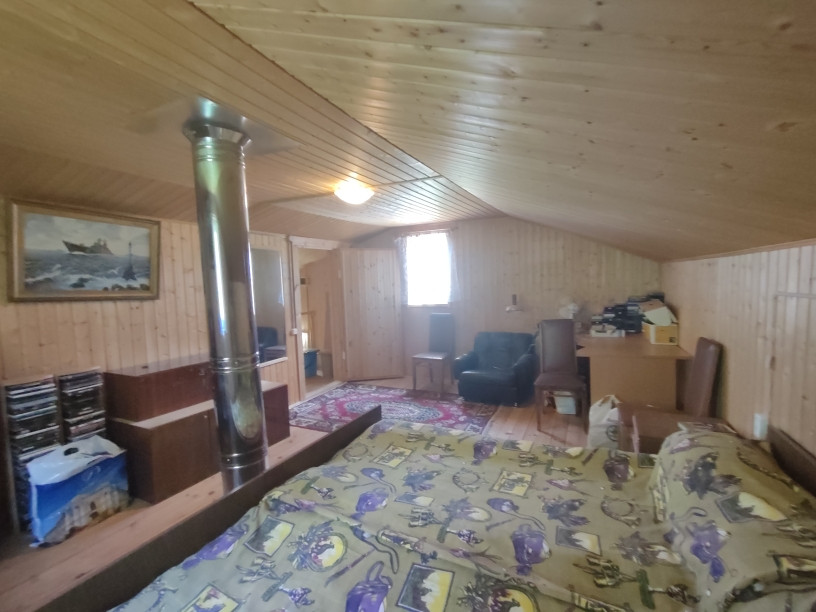 Основной дом построен по каркасной технологии на свайном фундаменте, крыша -металлочерепица. Дом теплый для круглогодичного проживания, отапливается камином (устроены воздухоотводы во все комнаты). Дом просторный - открытая терраса , застекленная веранда, просторная кухня-гостиная, 2 изолированные спальни,кладовка, совмещенный санузел. Есть мансардное помещение, в котором возможно устройство жилых комнат.