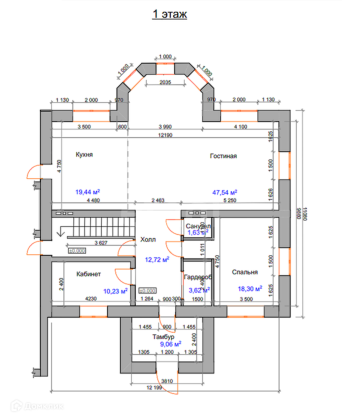 Для перекрытия первого этажа использованы ЖБ-плиты ПК-66-15 и ПК-51-15. Ноль выполнен монолитной плитой. Под домом находятся 2 цокольных этажа с отдельными входами, общей площадью 275 кв.м. (не включена в общую площадь) с высотою потолков 2,7 м.
