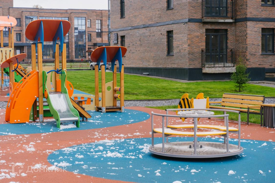 Во дворе яркие игровые городки, фонтаны, огромная шахматная доска с ростовыми фигурами и еще десяток приключений, на которые только хватит детской фантазии.