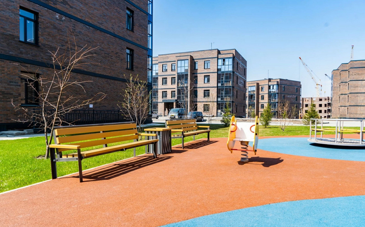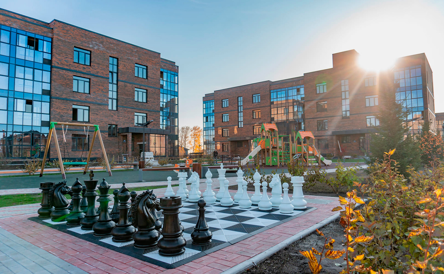 Яркие детские площадки с безопасным прорезиненным покрытием. Ростовые шахматные фигуры. Многочисленные фитнес зоны Workout для детей и взрослых.