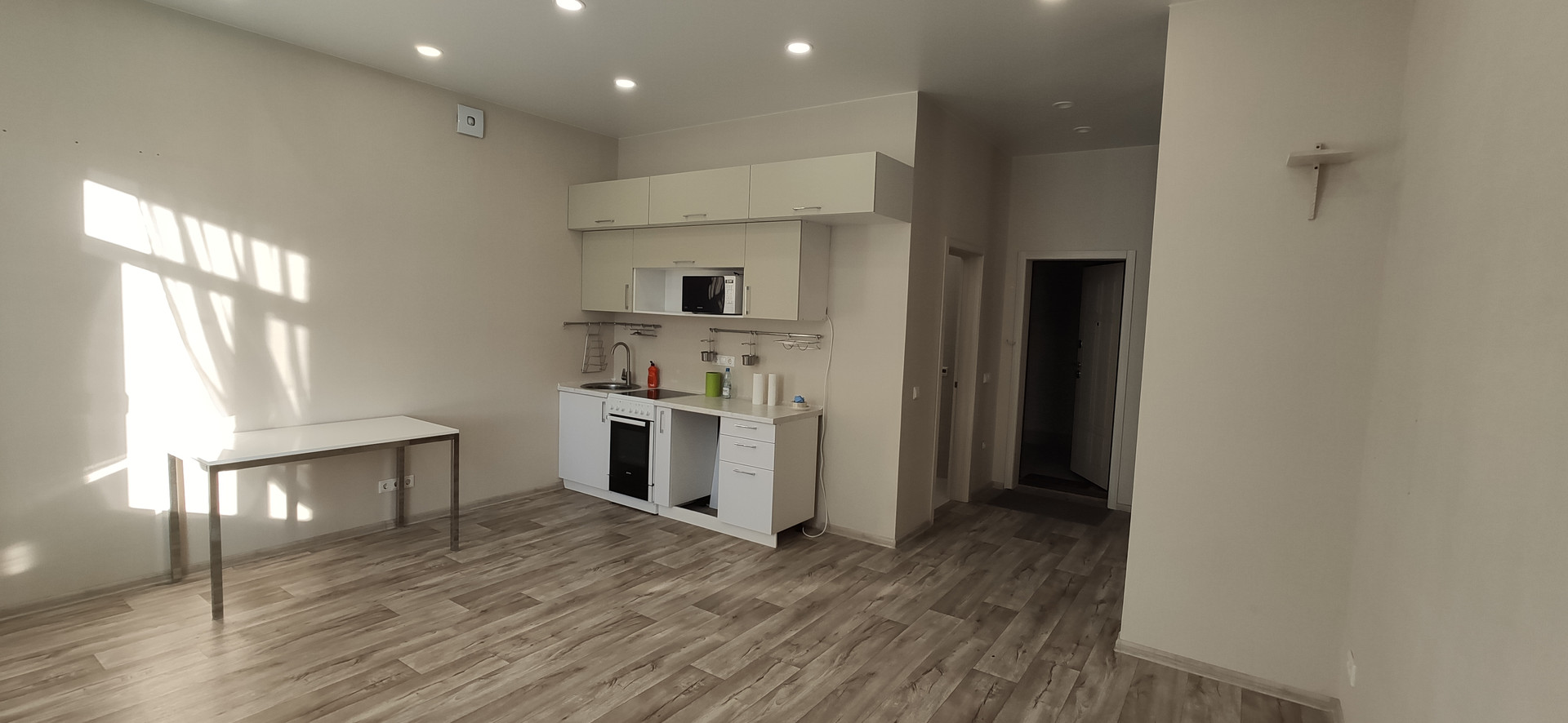 Студия с качественным ремонтом, с кухонным гарнитуром, кухонным столом и стульями, плитой, микроволновкой и встроенным шкафом в прихожей. Можно быстро въехать и жить в уютном ЖК Да Винчи на закрытой от посторонних благоустроенной территории, со шлагбаумом, с охраной и видеонаблюдением, с парковками по периметру и двором с детской и спортивной площадками, с тренажерами, с фонтаном. В доме есть колясочная и душ для животных. Современная комфортная малоэтажная застройка!