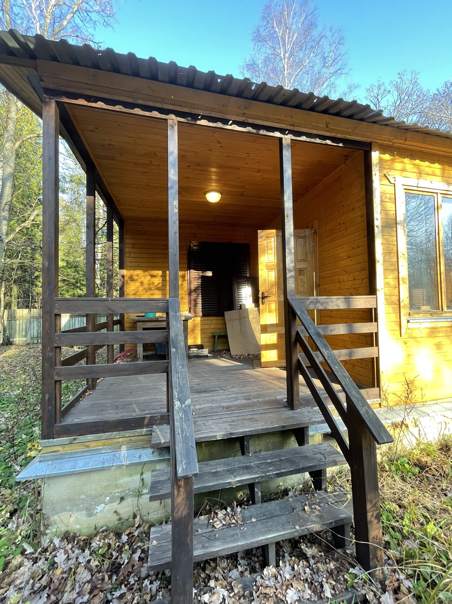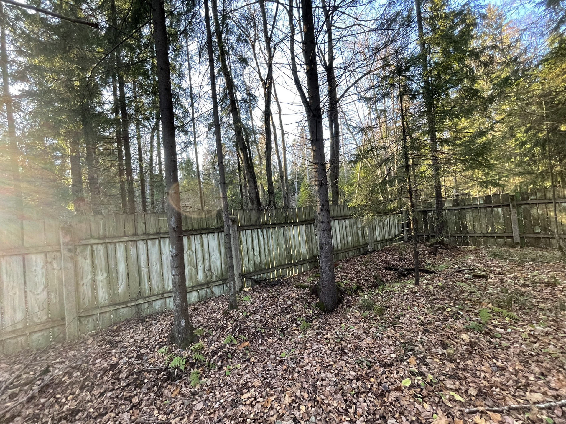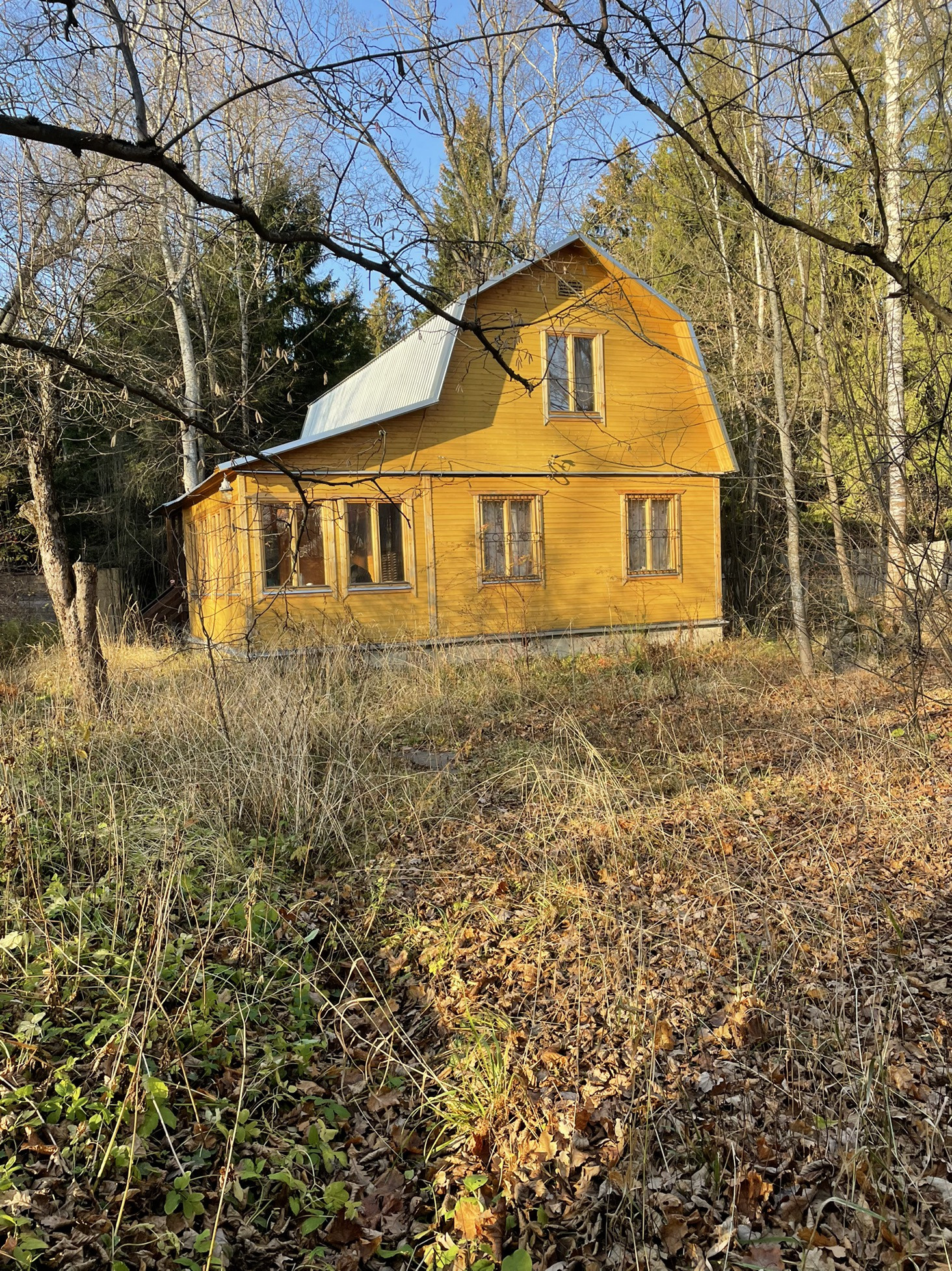 Участок с двух сторон граничит с лесом, на участке плодовые деревья. Удобный заезд с шоссе.