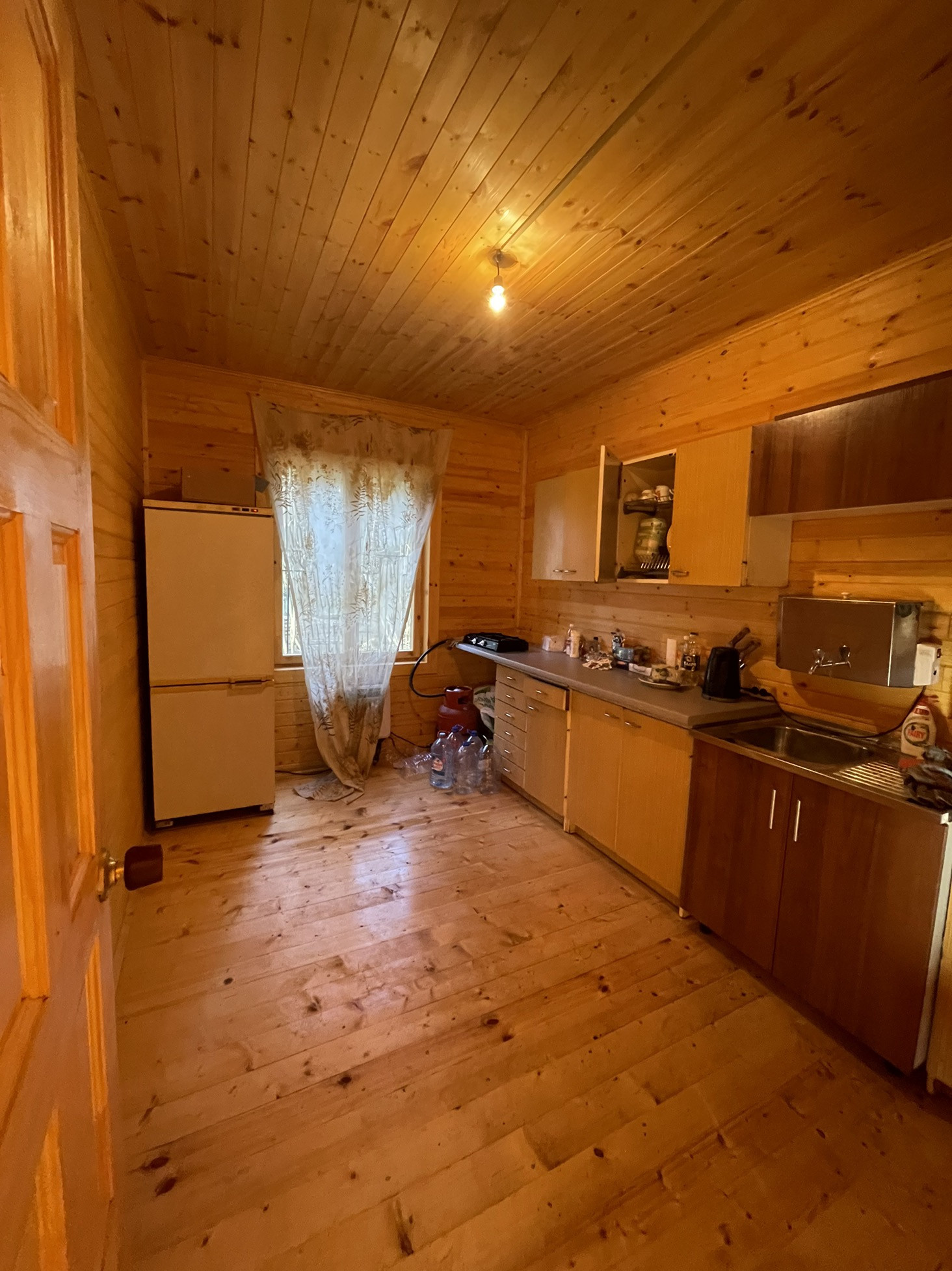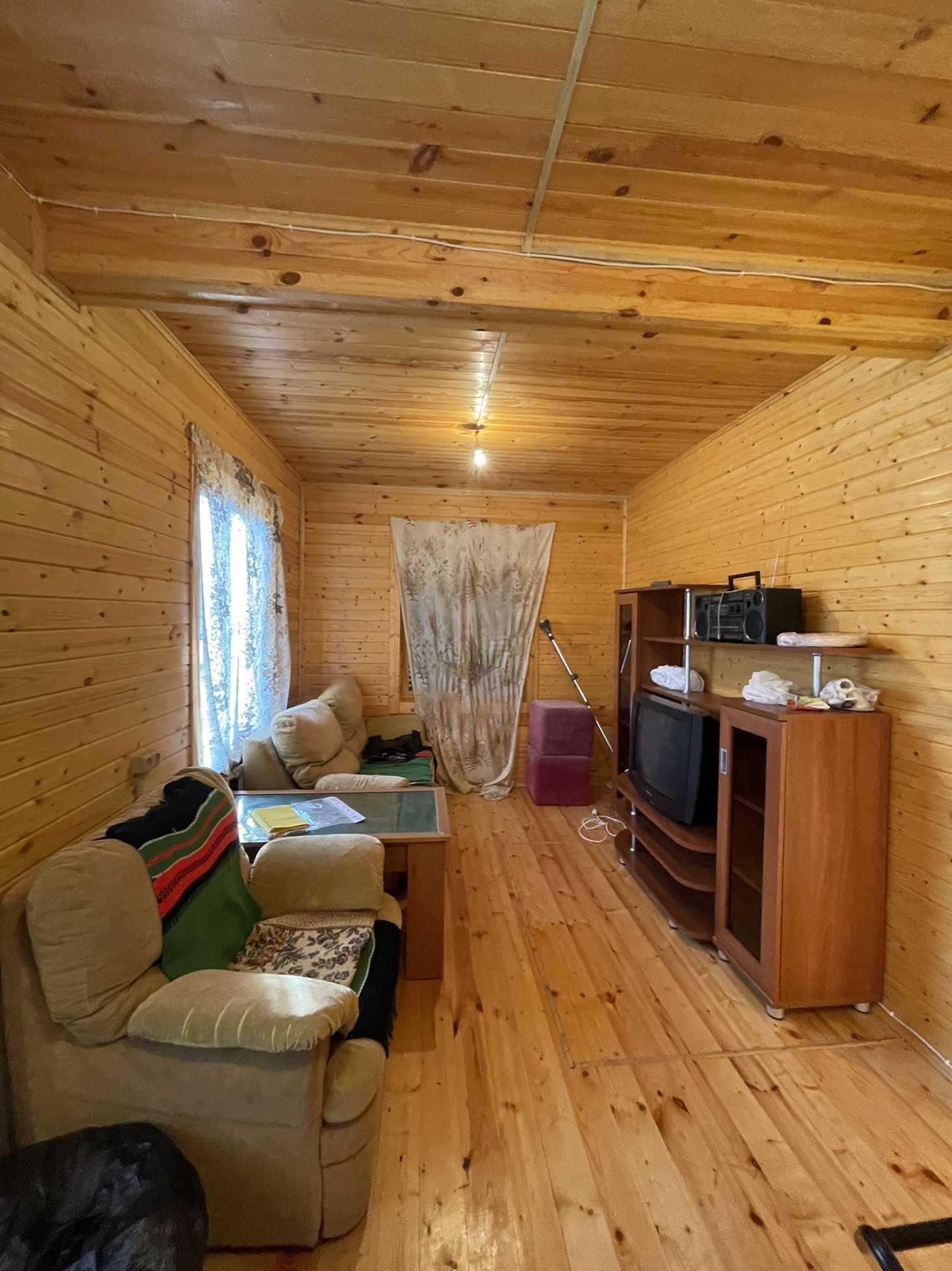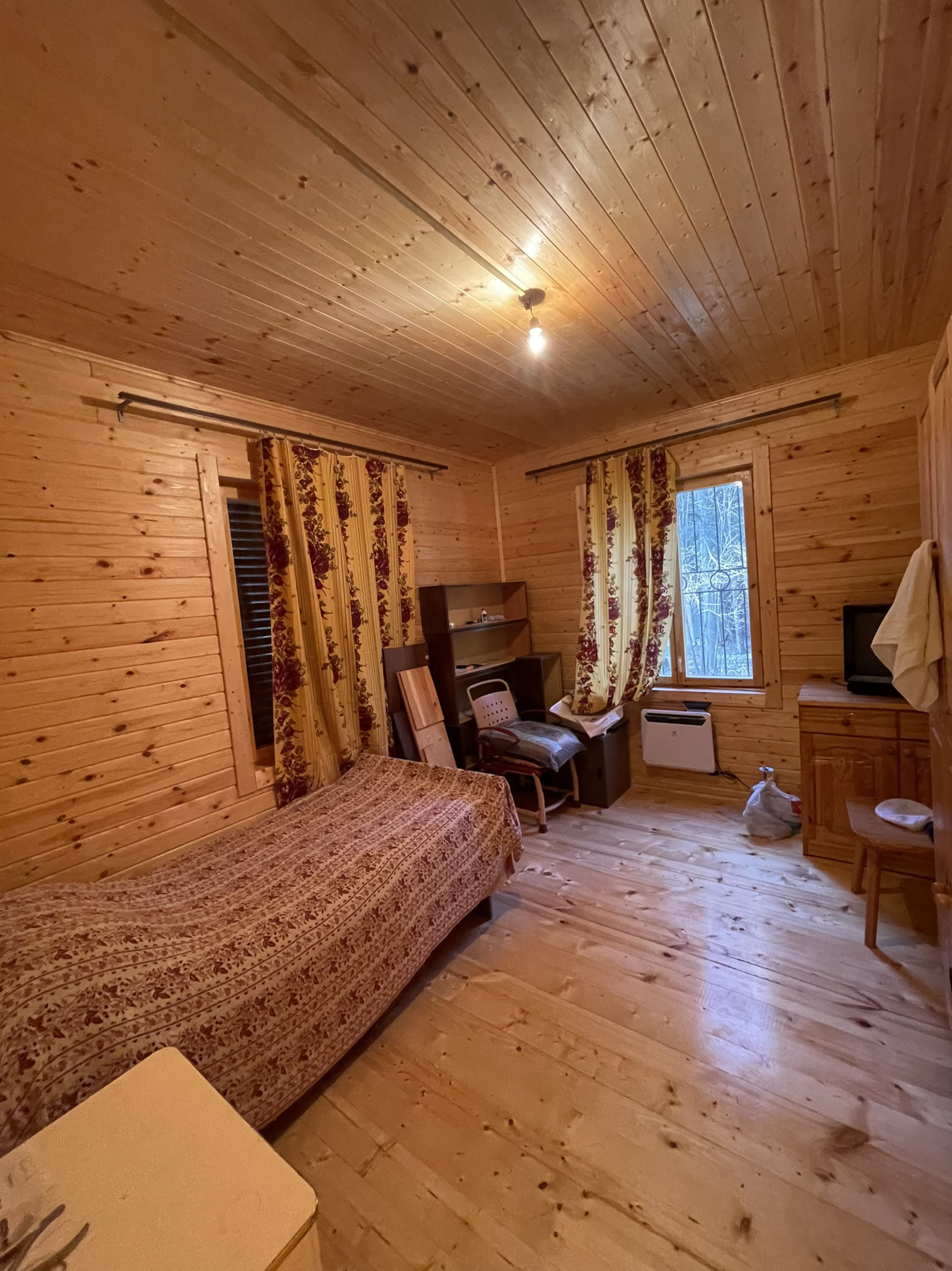 Участок 21 сотка, на котором стоят два дома. Один дом новый, 2016 года постройки, 100 кв.м, два этажа. На первом этаже кухня, две изолированные комнаты, душевая. На втором этаже две изолированные комнаты. Второй дом 60 кв.м, два этажа. На первом этаже комната и кухня, на втором этаже комната. В доме печное отопление. Проведено электричество, есть вода (колодец). В доме имеются электрические радиаторы.