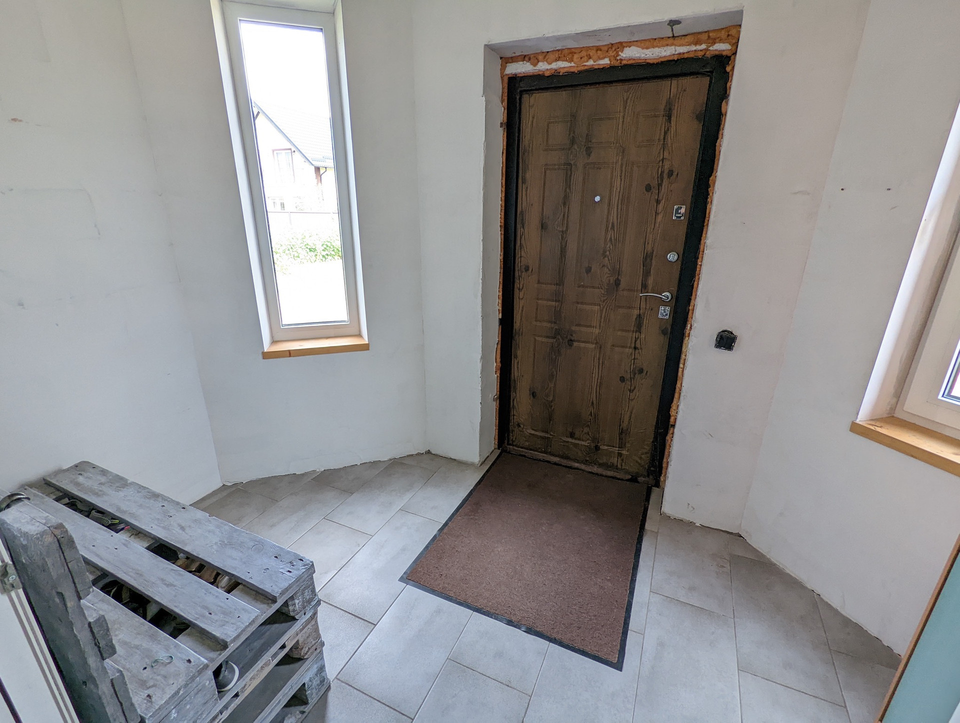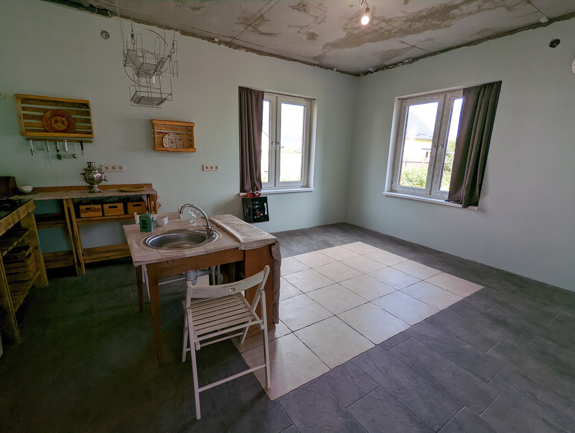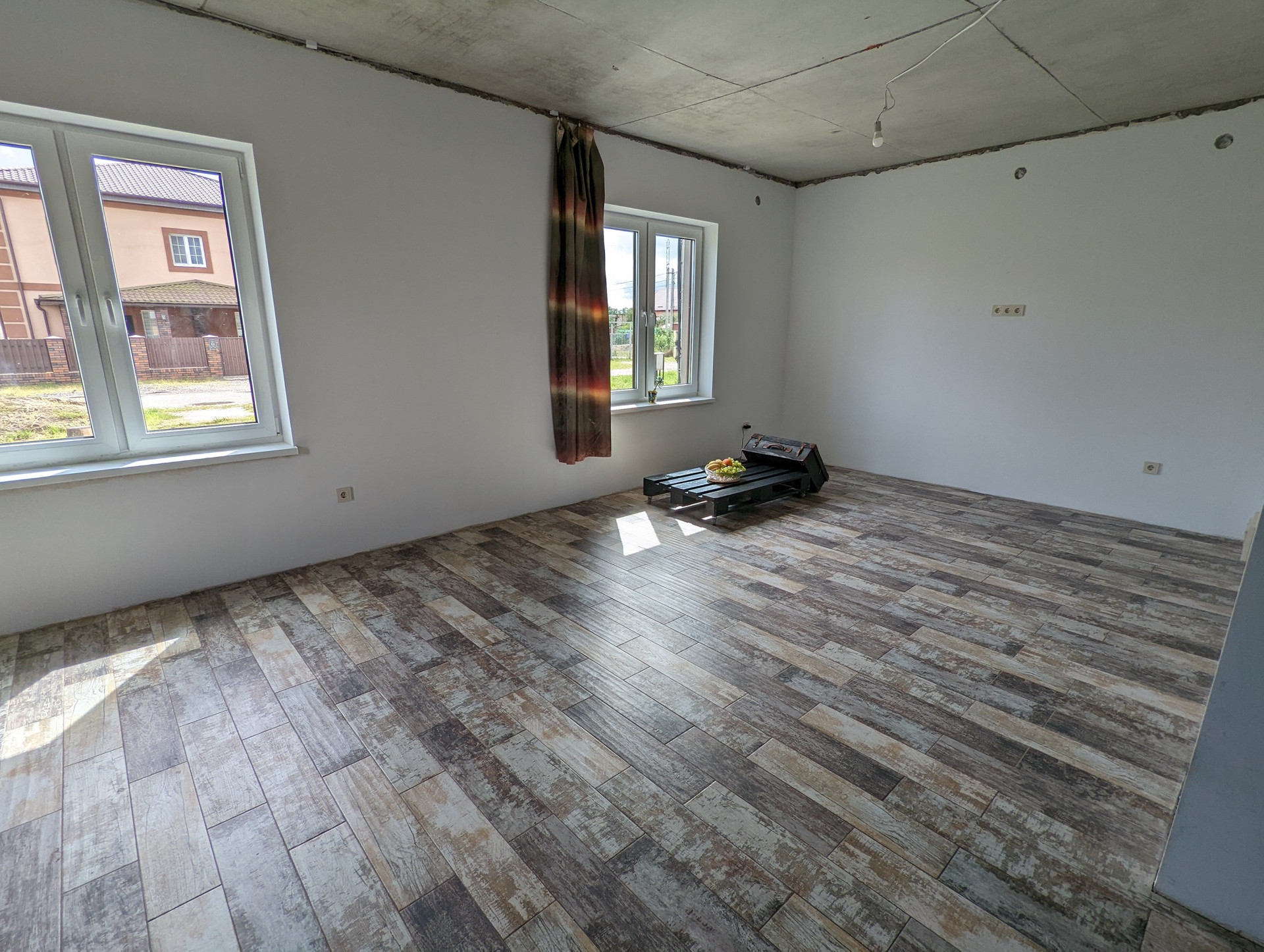 полы:полусухая стяжка частично финишное покрытие (2 комнаты) ламинат, линолеум