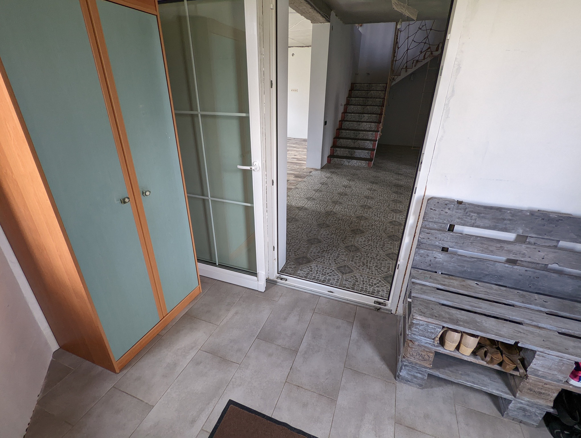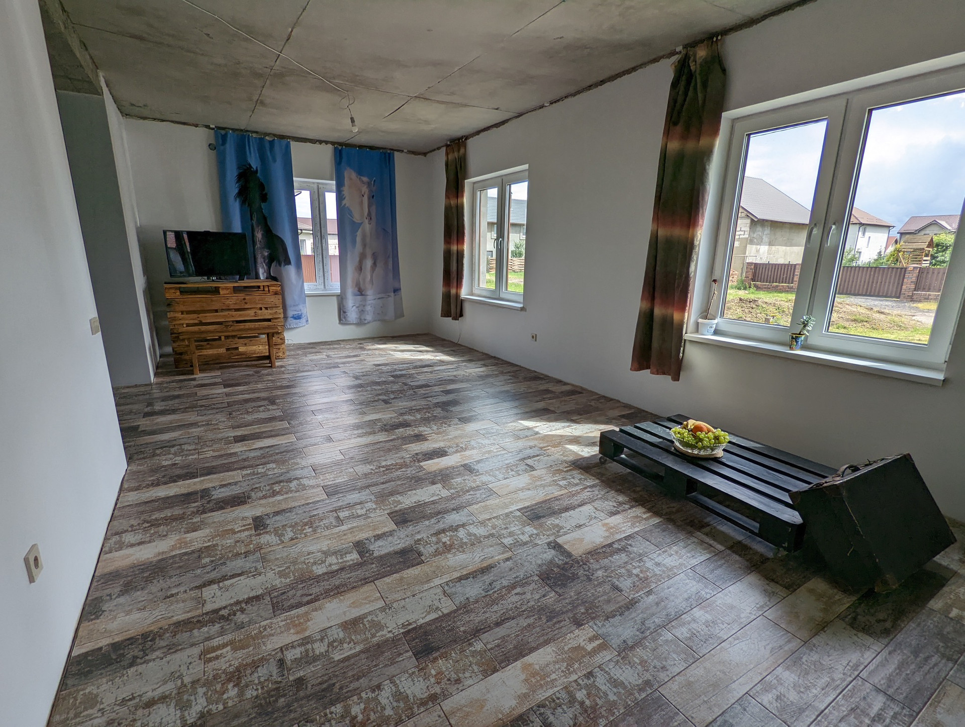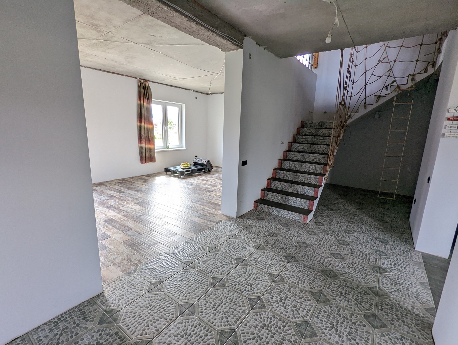 полы:полусухая стяжка частично финишное покрытие (2 комнаты) ламинат, линолеум