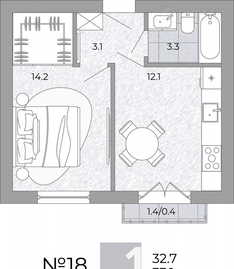 Общая площадь 33.1 м2