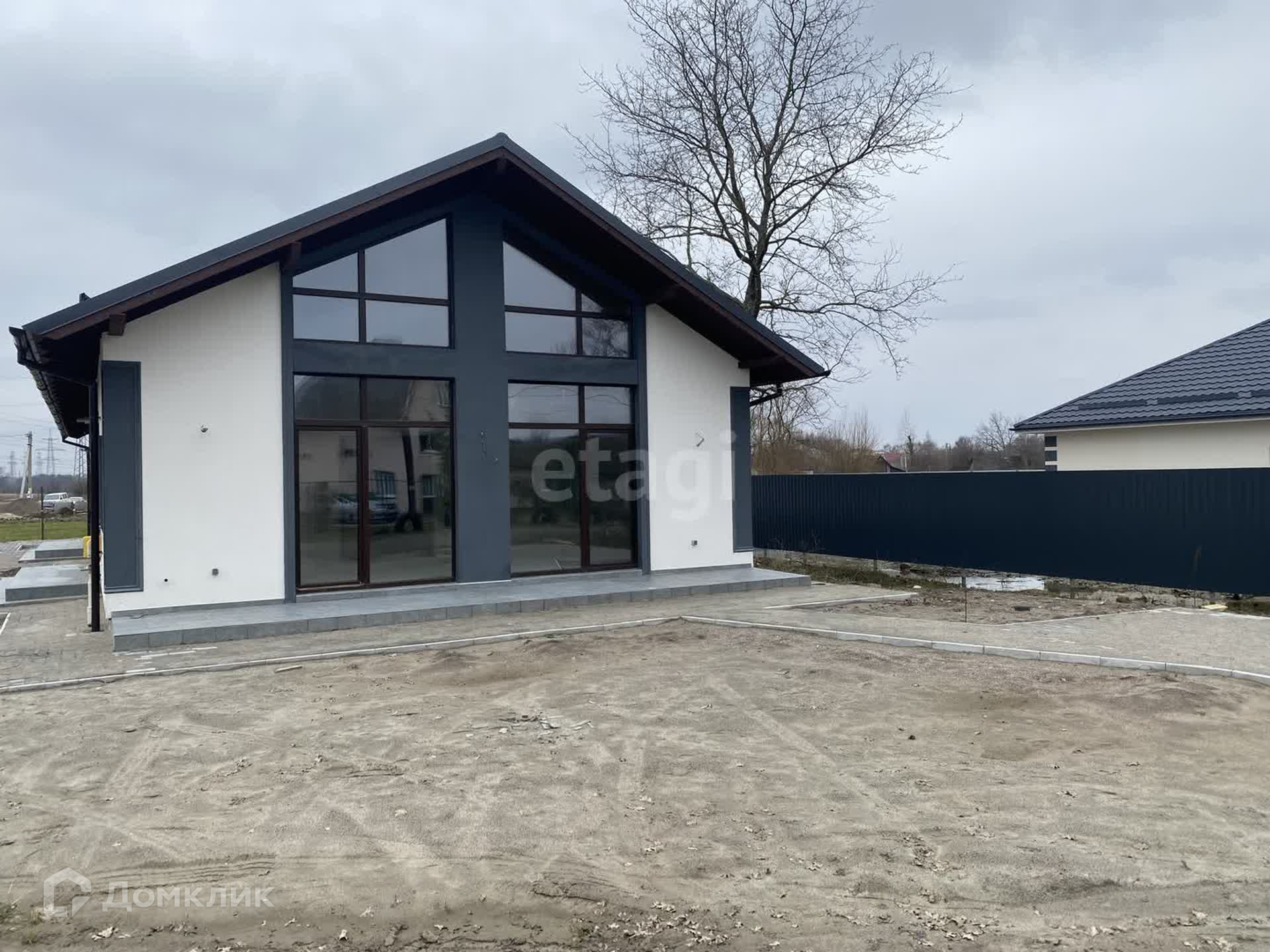 Продаются две блок-секции по 79 м2 в сером ключе, с благоустройством территории и забором (фотографии еще без тротуарной плитки) в Гурьевском районе поселок Луговое- Новое.