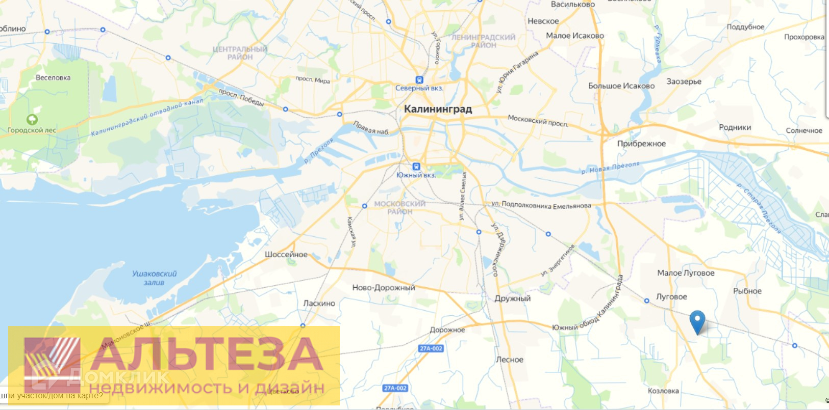 От центра поселка до центра города Калининграда расстояние – 15 км. От поселка до пляжа в городе Зеленоградске – 41 км.