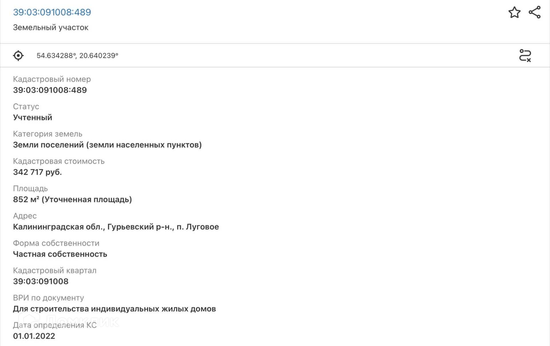 Участок находится в собственности. Поселок газифицирован, соседи подключены к газу, свет так же проходит в поселке. Участок находится рядом с асфальтированной дорогой. В поселке ходят автобусы по маршруту: 44,121,173,509,520,525,527,620э Маршрутки : 15,16. До Калининграда 15 мин. езды на машине,либо 30 мин. на автобусе. До остановки транспорта и магазина пешком 850 м. В 600 мeтpаx от учaсткa cтроится новая школа. Открытие 1 сентября 2024 года.