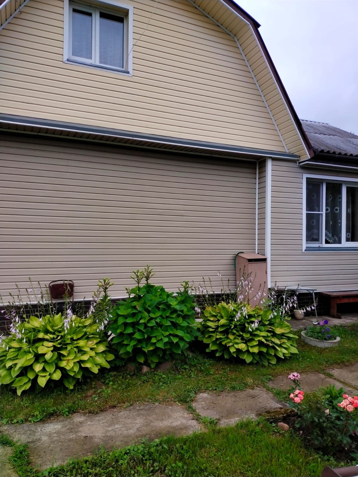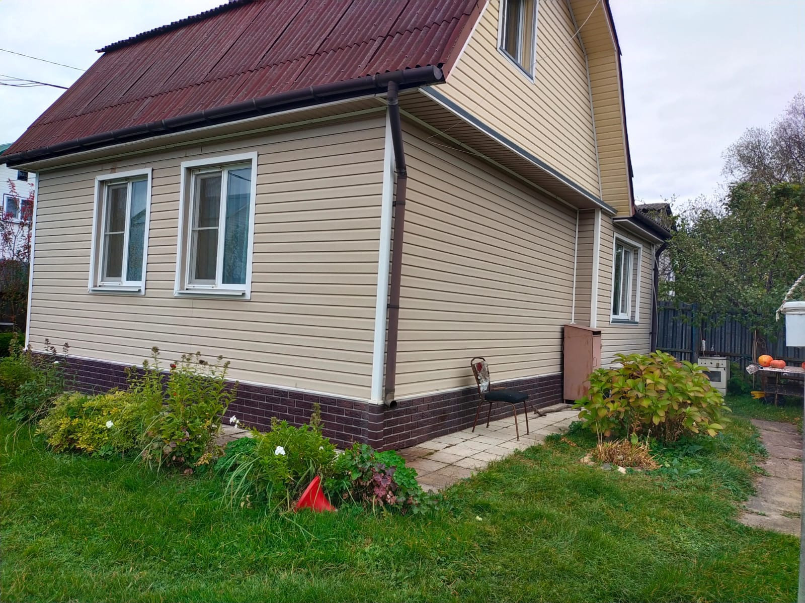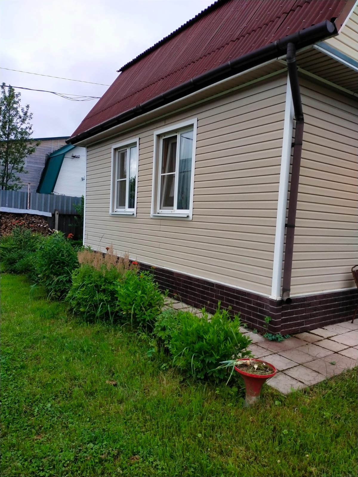Дом 2-х этажный, щитовой+ блоки, обшит сайдингом, на ленточном фундаменте. В доме 3 изолированные комнаты и большая кухня гостиная. Отопление электрическое,  печное. Окна ПВХ. Канализация - биотуалет. Статус индивидуальный жилой дом. Участок 6,2 сот. Ухоженный, ровный. На участке теплица, баня на ленточном фундаменте 6 на 3 м из калиброванного бруса, бетонный бассейн 3,5м.на 3,5 м., хозблок. Торг.