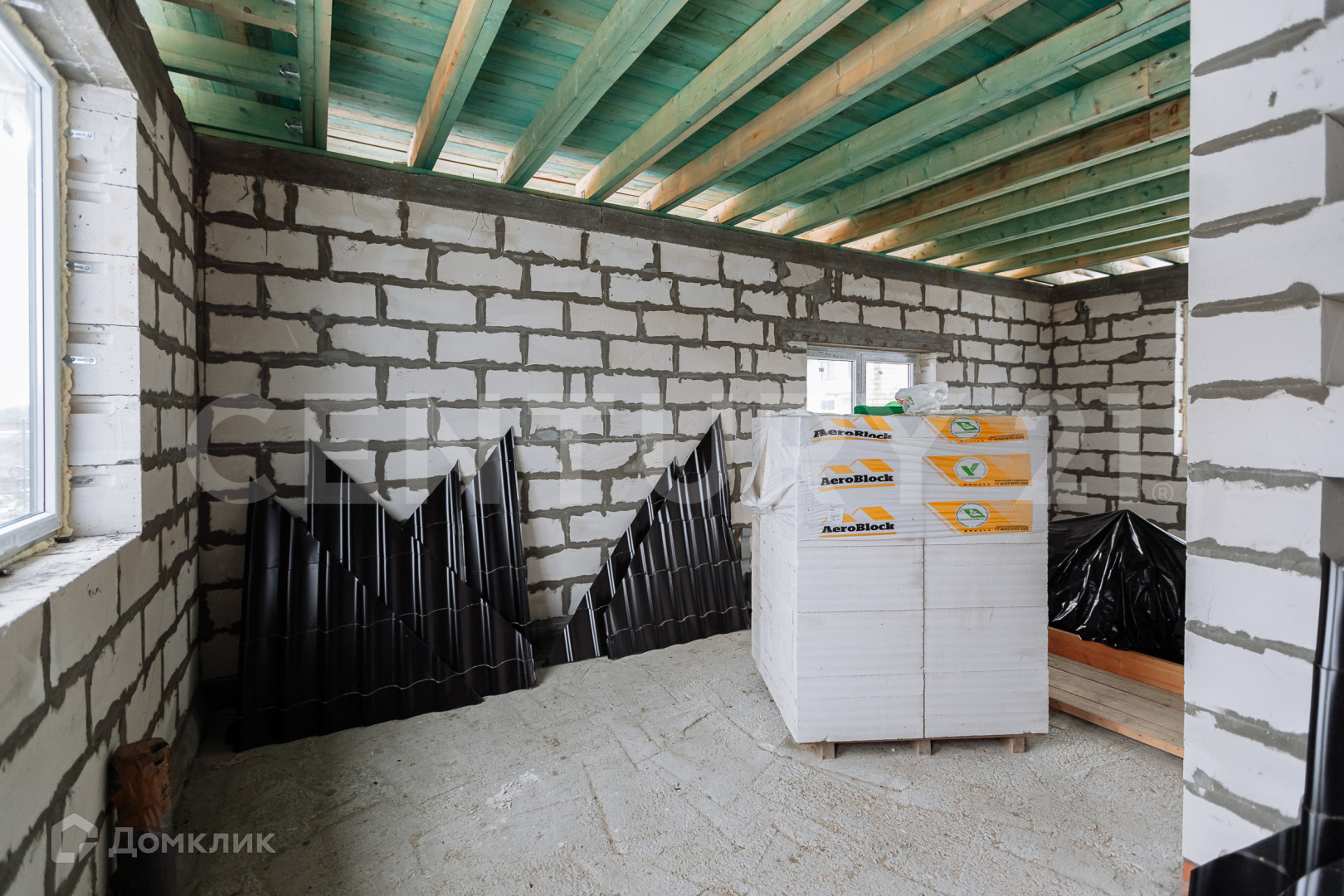 Дом 2022 года постройки имеет 2 комнаты, кухню-столовую, 2 санузла, гардеробную. Второй этаж имеет свободную планировку, можно разместить 2 комнаты. В доме 2 выхода, один из которых из кухни на террасу. К дому подведено электричество 15кВт, своя скважина. Фундамент ленточный, сверху залита плита. Кровля металлочерепица, четырехскатная.