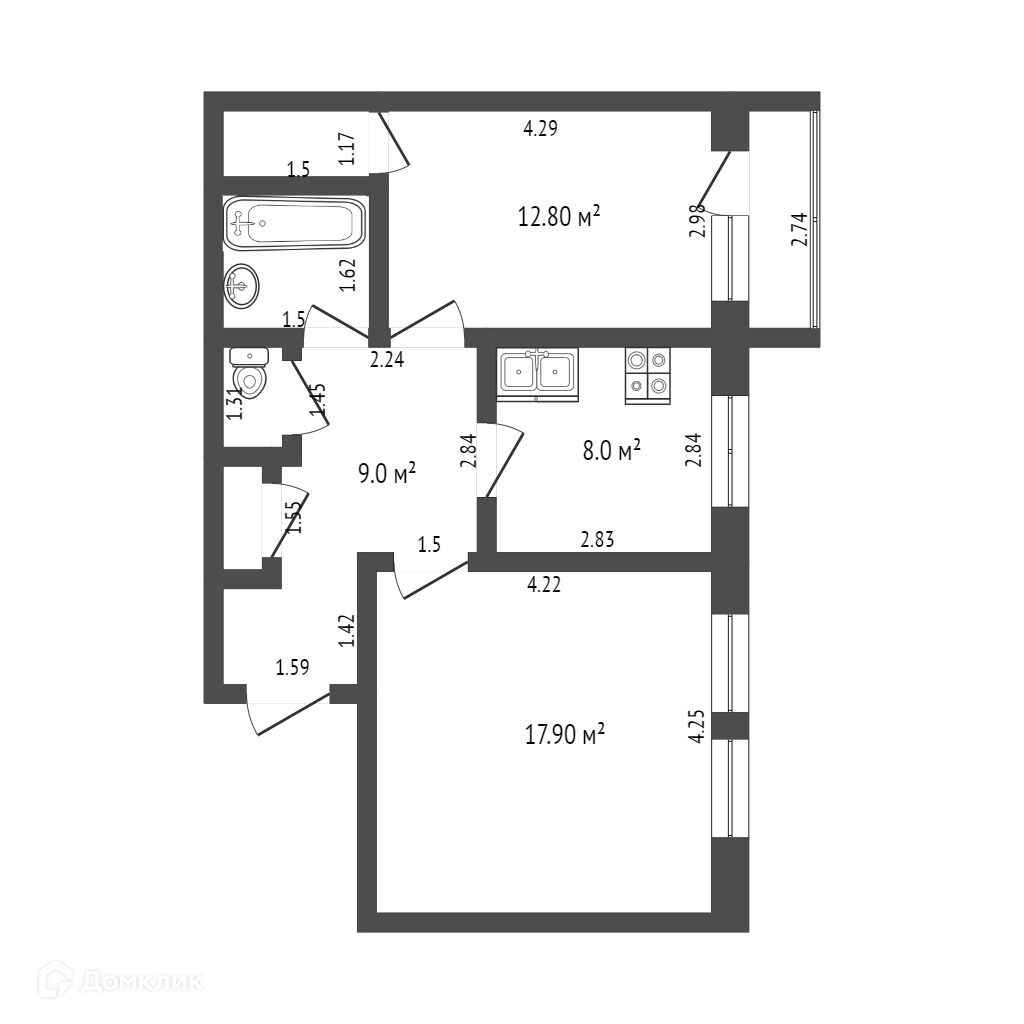 Общая площадь 53.7 м2