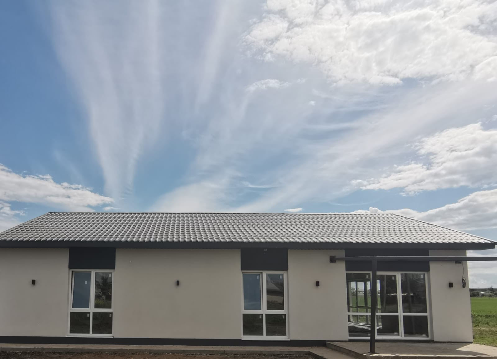 Кровля – металлочерепица 0,5 мм, цвет графит-шелк, карнизы