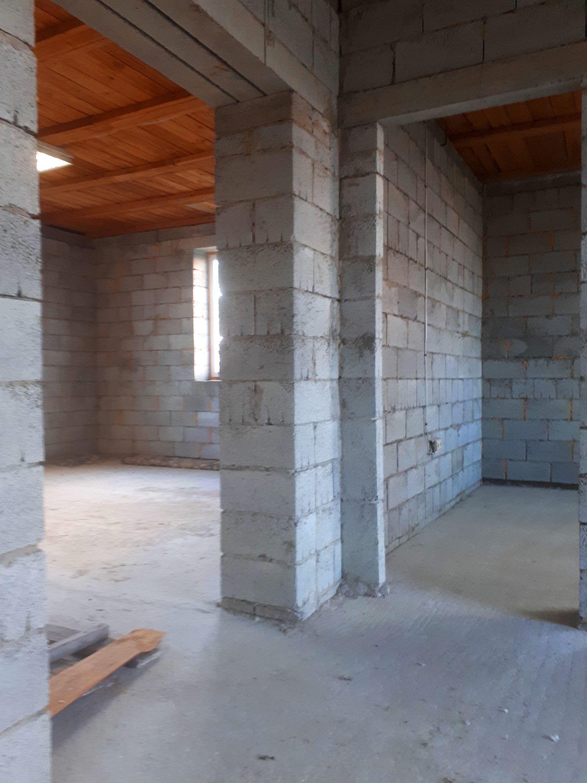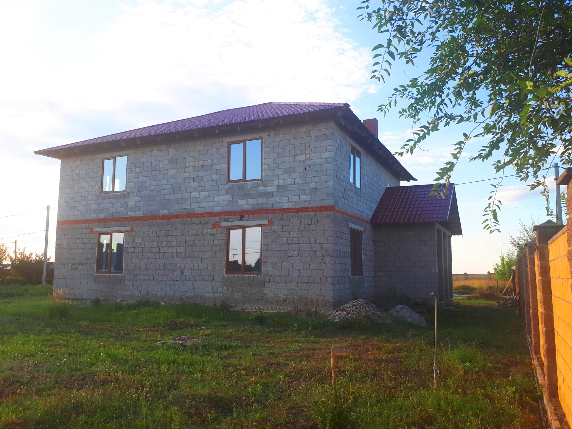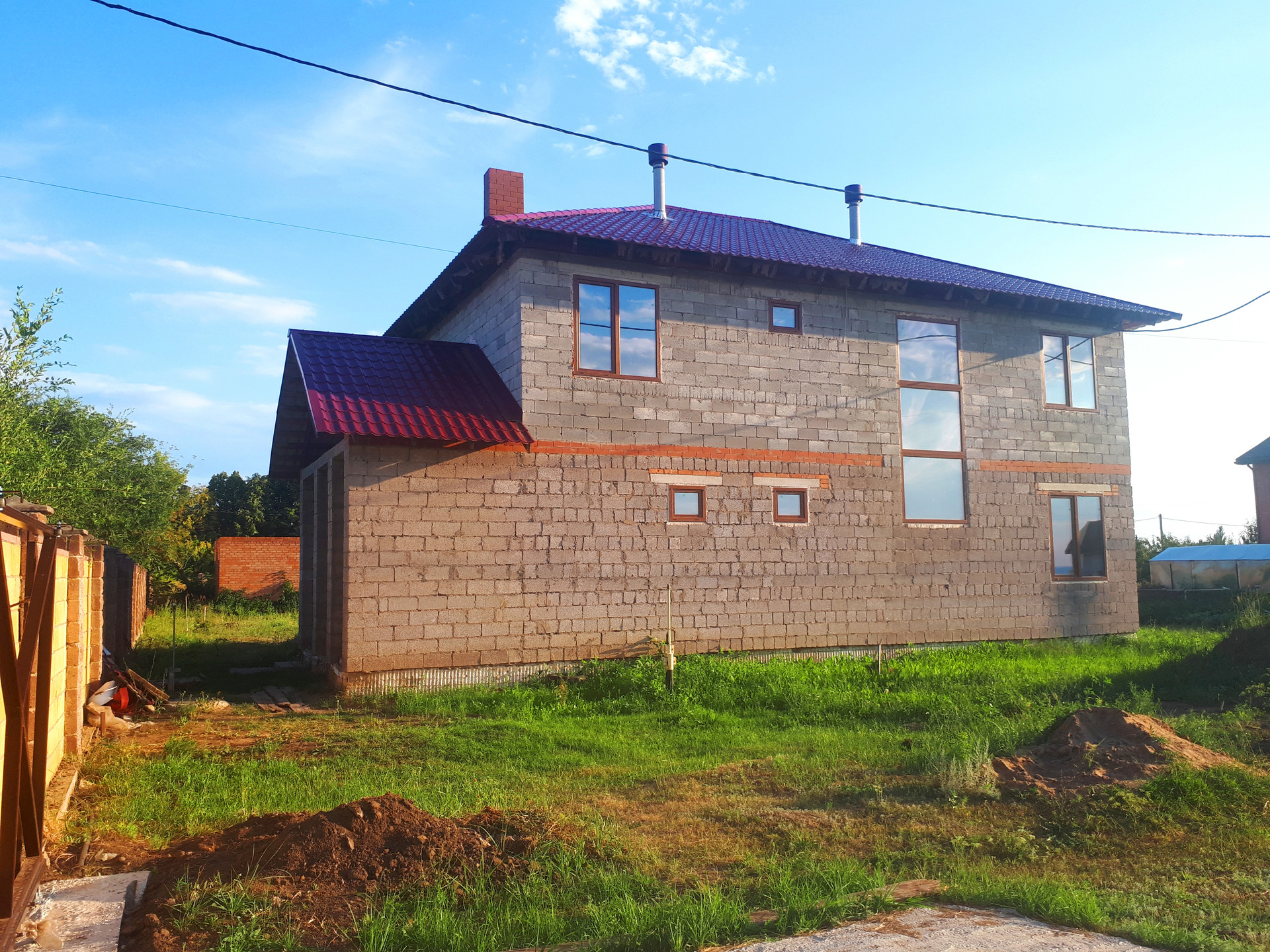 Электричество – 380V / 15 кВт. Смонтирован эл.щит, разводка по дому (временные розетки и светильники).