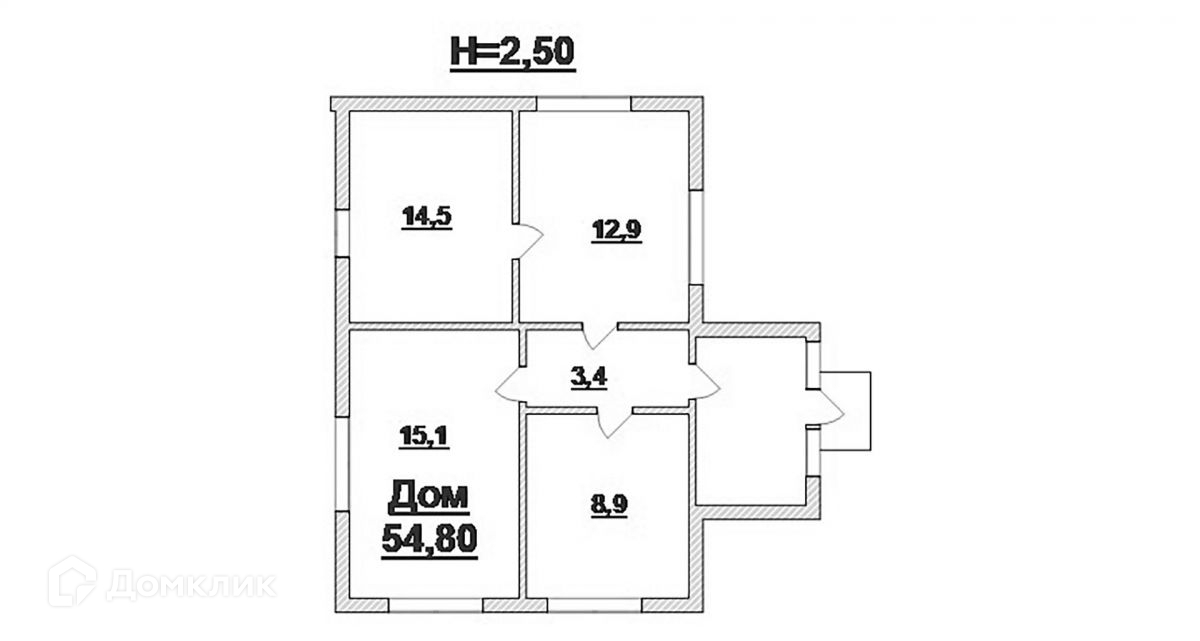 Общая площадь 54.8 м2
