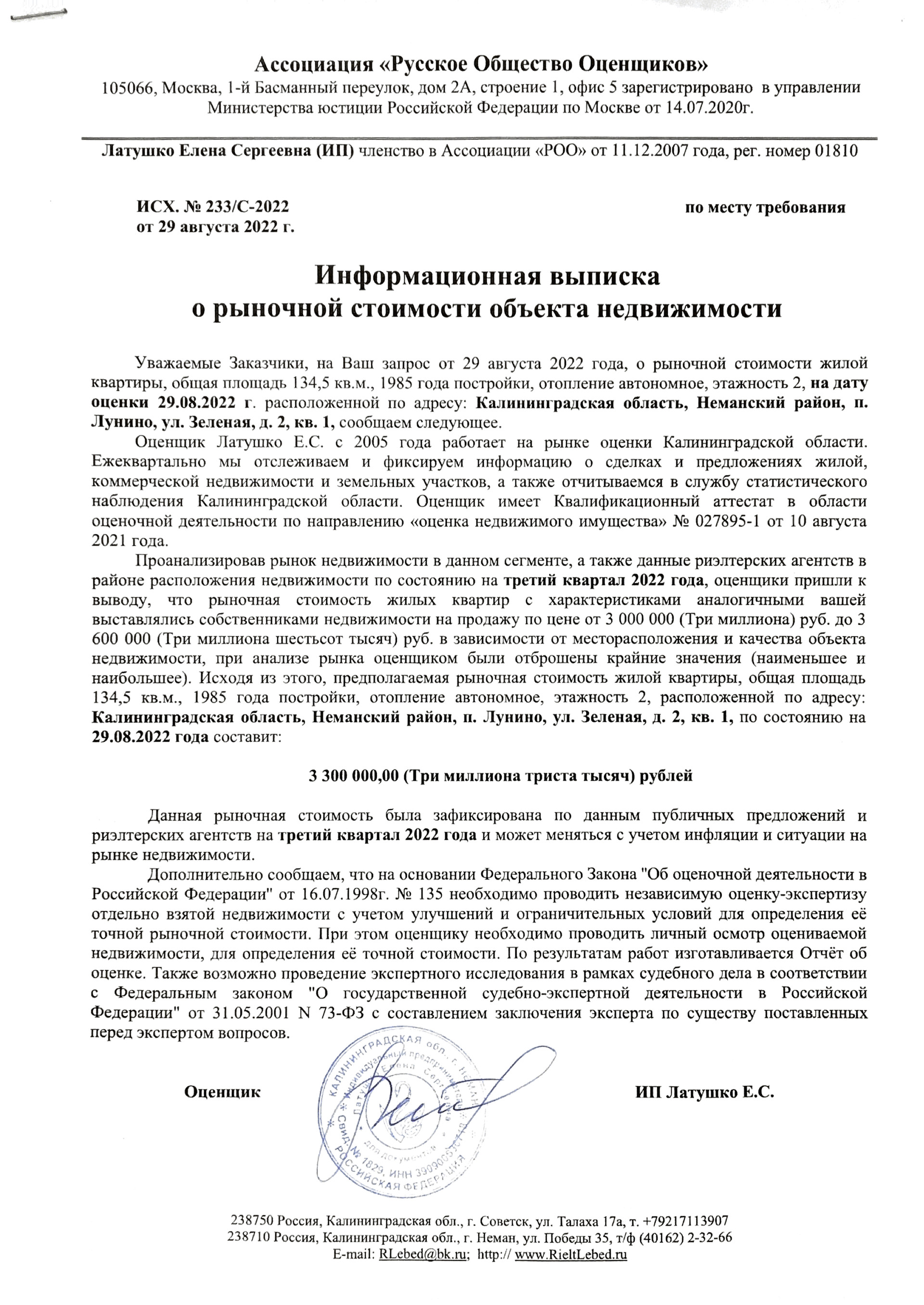 Стоимость недвижимости: