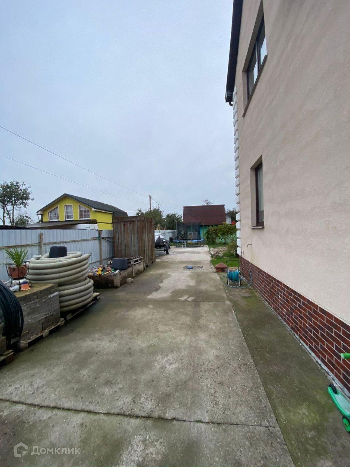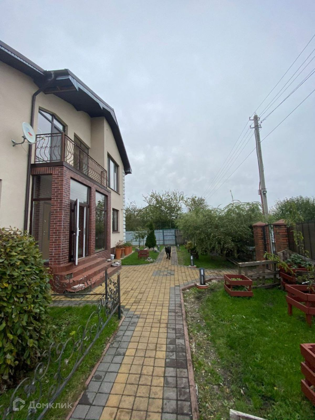 Огороженная территория, двор выложен плиткой.